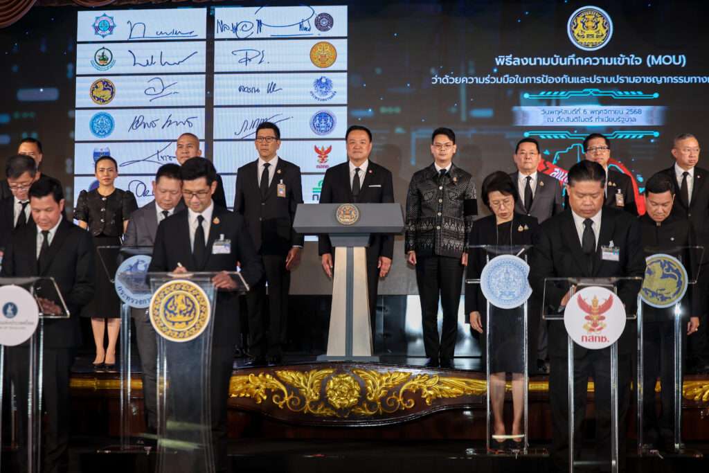 วันที่ 6 พฤศจิกายน 2568 ที่ทำเนียบรัฐบาล นายอนุทิน ชาญวีรกูล นายกรัฐมนตรีและรัฐมนตรีว่าการกระทรวงมหาดไทย เป็นประธานและสักขีพยานในพิธีลงนามบันทึกความเข้าใจ (MOU) ว่าด้วยความร่วมมือในการป้องกันและปราบปรามอาชญากรรมทางเทคโนโลยี ระหว่าง 15 หน่วยงานภาครัฐและเอกชน อาทิ กระทรวงการคลัง กระทรวงดิจิทัลเพื่อเศรษฐกิจและสังคม กระทรวงยุติธรรม สำนักงานตำรวจแห่งชาติ ธนาคารแห่งประเทศไทย สมาคมธนาคารไทย และสมาคมสถาบันการเงินของรัฐพิธีดังกล่าวสะท้อนการรวมพลังของหน่วยงานทุกภาคส่วน เพื่อร่วมกัน “ประกาศสงครามกับอาชญากรรมออนไลน์” อย่างเป็นระบบ