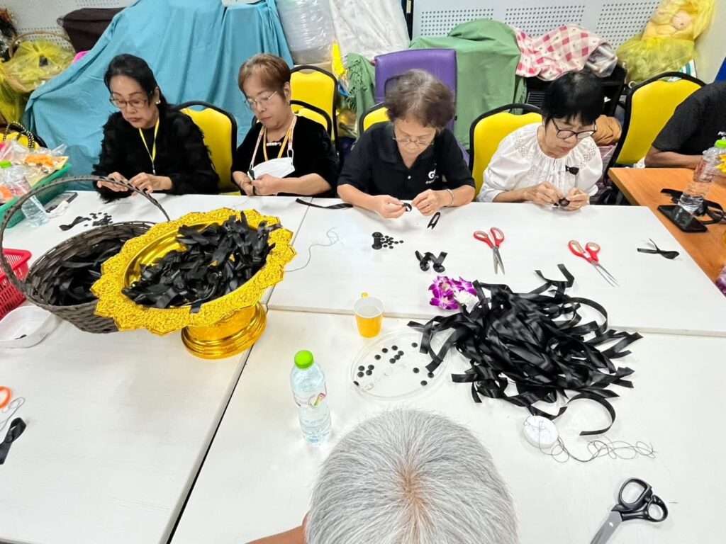 วันที่ 6 พฤศจิกายน 2568 โรงพยาบาลเจริญกรุงประชารักษ์ สำนักการแพทย์ กรุงเทพมหานคร จัดกิจกรรมจิตอาสา “ริบบิ้นแทนใจ…ถวายความอาลัยแด่สมเด็จพระนางเจ้าสิริกิติ์ พระบรมราชินีนาถ พระบรมราชชนนีพันปีหลวง” โดยมี นพ.พรเทพ แซ่เฮ้ง ผู้อำนวยการโรงพยาบาลเจริญกรุงประชารักษ์ และนายเศรษฐฤกษ์ ดาวอรุณ รองผู้อำนวยการโรงพยาบาล (ฝ่ายบริหาร) มาร่วมกิจกรรมและให้กำลังใจอาสาสมัครจิตอาสา Yellow Birdsและบุคลากรโรงพยาบาลฯ ในการทำริบบิ้นสีดำ เพื่อแสดงออกถึงความจงรักภักดี และน้อมรำลึกในพระมหากรุณาธิคุณ ของสมเด็จพระนางเจ้าสิริกิติ์ พระบรมราชินีนาถ พระบรมราชชนนีพันปีหลวง และนำไปมอบให้บุคลากรโรงพยาบาลฯ อาสาสมัครจิตอาสา Yellow Birds ยุวชนจิตอาสา (Youth Yellow Birds) และผู้มารับบริการในโรงพยาบาลเจริญกรุงประชารักษ์