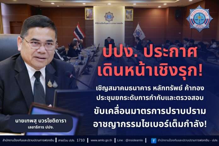 ปปง. เดินหน้าเชิงรุก เชิญสมาคมธนาคาร หลักทรัพย์ และผู้ประกอบการสินทรัพย์ทางการเงิน ร่วมถกมาตรการคุมเข้ม KYC–EDD สกัดเส้นทางการเงินแก๊งอาชญากรรมไซเบอร์ หลังรัฐบาลประกาศ “สงครามสแกมเมอร์” เป็นวาระแห่งชาติ