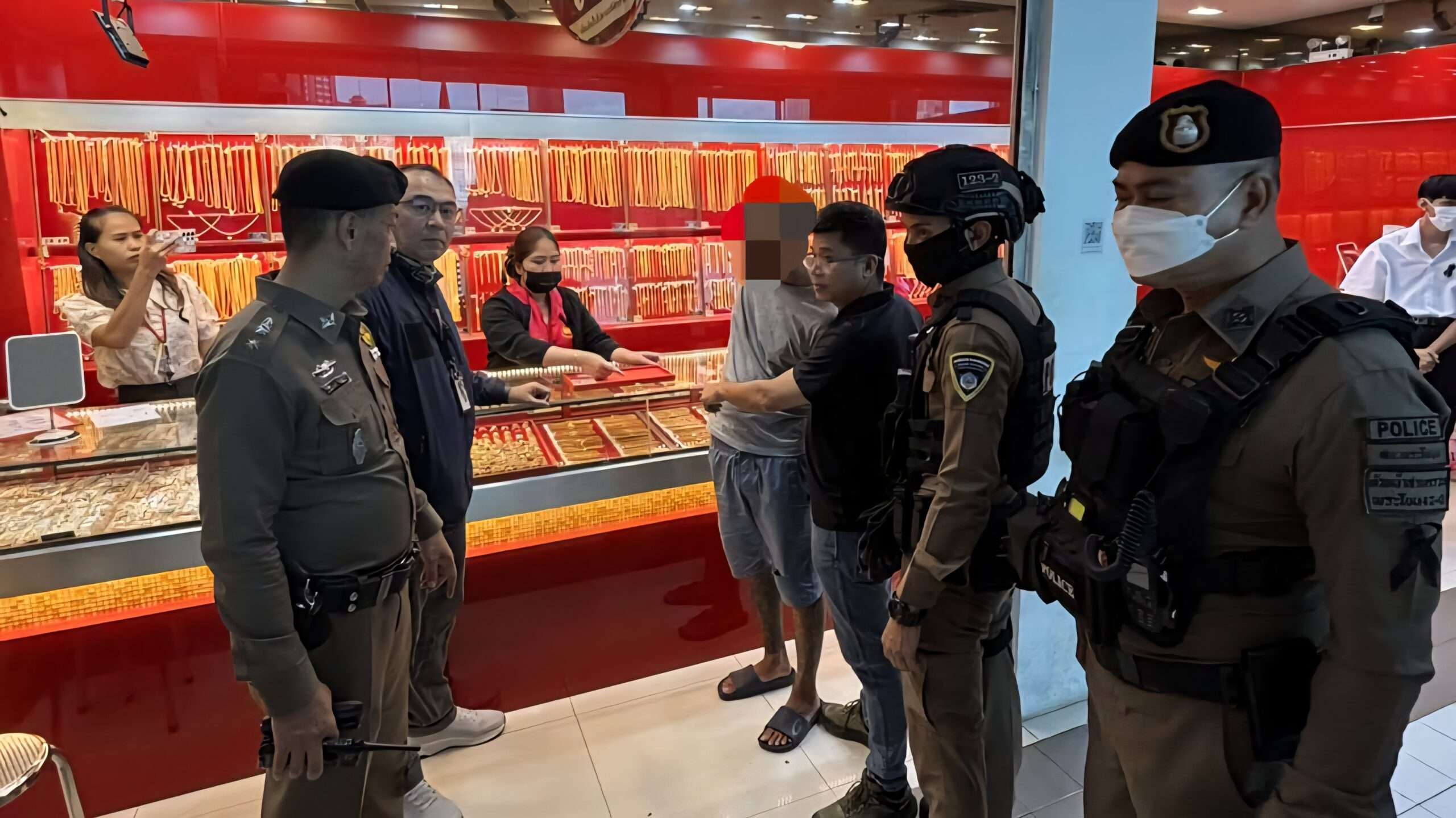 ร่วมกันลงพื้นที่ตรวจสอบติดตามจับกุมผู้ก่อเหตุ นาย ชานน หรือต๊อบ เคร่งธรรมกิจ อายุ 26 ปิพร้อมด้วยของกลาง 1.ยาเสพติดให้โทษประเภท 1 (ยาไอซ์) ชนิดเกล็ดใส บรรจุอยู่ในถุงพลาสติกใสชนิดกด ปิดดึงเปิด จำนวน 1 ถุง น้ำหนัก ชั่งรวมถุงประมาณ 0.66 กรัม (ได้ชั่งต่อหน้าผู้ต้องหา) โดยถุงเปล่าหนัก 0.26 กรัม น้ำหนักเฉพาะตัวยาไอซ์หนัก 0.40 กรัม 2.แหวนทองคำ น้ำหนักประมาณ 15.2 กรัม จำนวน 1 วง 3.เอกสารการรับชื่อทองคำเก่าของ บริษัท ห้างทองเอกทองคำเยาวราชโกลด์ จำกัด (มีชื่อนายสันติ ฮังนนท์ เป็นผู้ขายมียอดเงิน จำนวน 57,000 บาท)