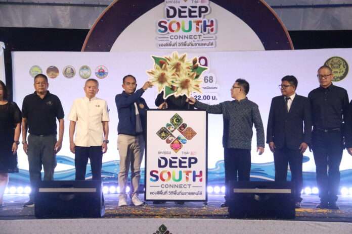 เบตง, ยะลา, วันที่ 7 พ.ย. – นายปิยะศิริ วัฒนวรางกูร เลขาธิการศูนย์อำนวยการบริหารจังหวัดชายแดนภาคใต้ (ศอ.บต.) ลั่นฆ้องเปิด ‘มหกรรม THAI DEEP SOUTH CONNECT ของดีพื้นที่ วิถีพื้นถิ่นชายแดนใต้ ครั้งที่ 3 โดย ศอ.บต. ได้ให้พื้นที่แก่ผู้ประกอบการกว่า 300 รายใช้ฟรี พร้อมอัดฉีดโปรโมชันรวมมูลค่ากว่าแสนบาท เพื่อดึงนักท่องเที่ยวและกำลังซื้อจากมาเลเซียเข้าสู่พื้นที่อย่างเร่งด่วน โดยมีเป้าหมายในการสร้าง ‘ตลาดชุมชนเชิงเศรษฐกิจ’ อย่างเป็นรูปธรรม
