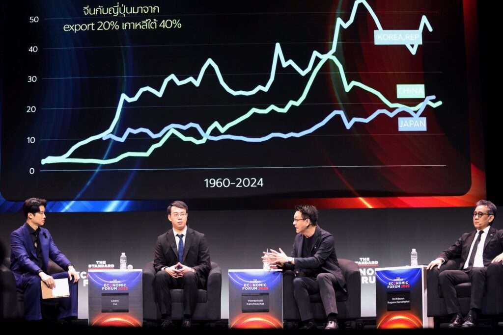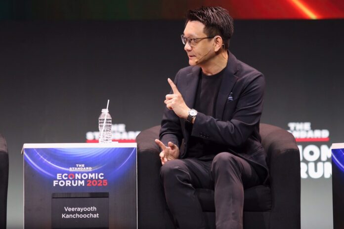 กรุงเทพฯ, วันที่ 7 พฤศจิกายน – วีระยุทธ กาญจน์ชูฉัตร รองหัวหน้าพรรคประชาชน (ปชน.) กล่าวบนเวที The Standard Economic Forum 2025 เสนอให้ประเทศไทยปรับยุทธศาสตร์เศรษฐกิจ เพื่อลดการพึ่งพาการส่งออกและเพิ่มความสำคัญของเศรษฐกิจภายใน สร้างประเทศไทยให้เป็น “เสือตัวที่ห้าที่วิ่งด้วยขาของตัวเอง” โดยระบุว่า ไทยมีการส่งออกต่อจีดีพีสูงกว่าจีน ญี่ปุ่น เกาหลีใต้ สะท้อนความอ่อนแอเศรษฐกิจภายใน