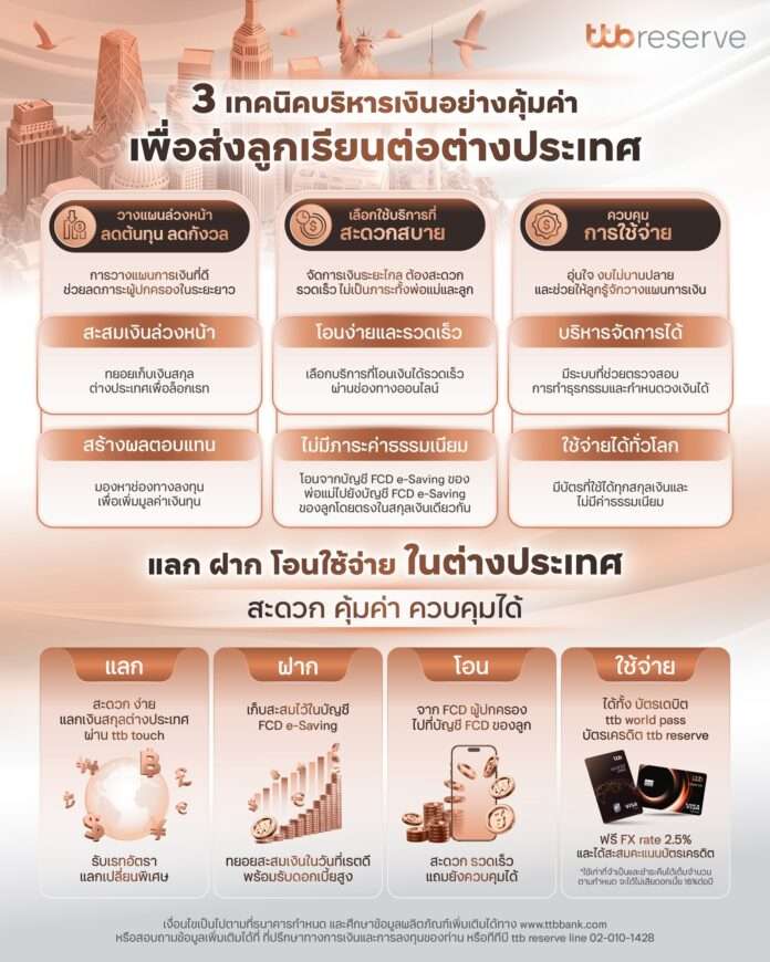ttb reserve พร้อมเป็นผู้ช่วยวางแผนทางการเงินให้กับผู้ปกครองเตรียมความพร้อมส่งบุตรหลานไปศึกษาต่อยังต่างประเทศได้สะดวกและคุ้มค่ามากขึ้น