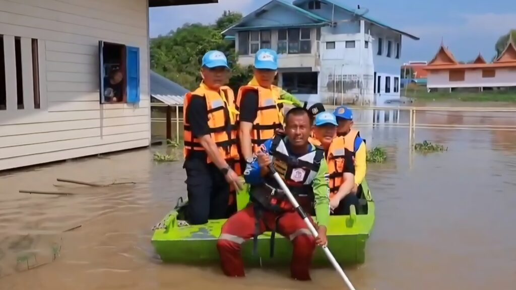 “แม่ทัพไก่” มท.ภ.1 ลงเรือช่วยเหลือประชาชน อ.บางบาล จ.พระนครศรีอยุธยา จากอิทธิพลพายุ “คัลแมกี”