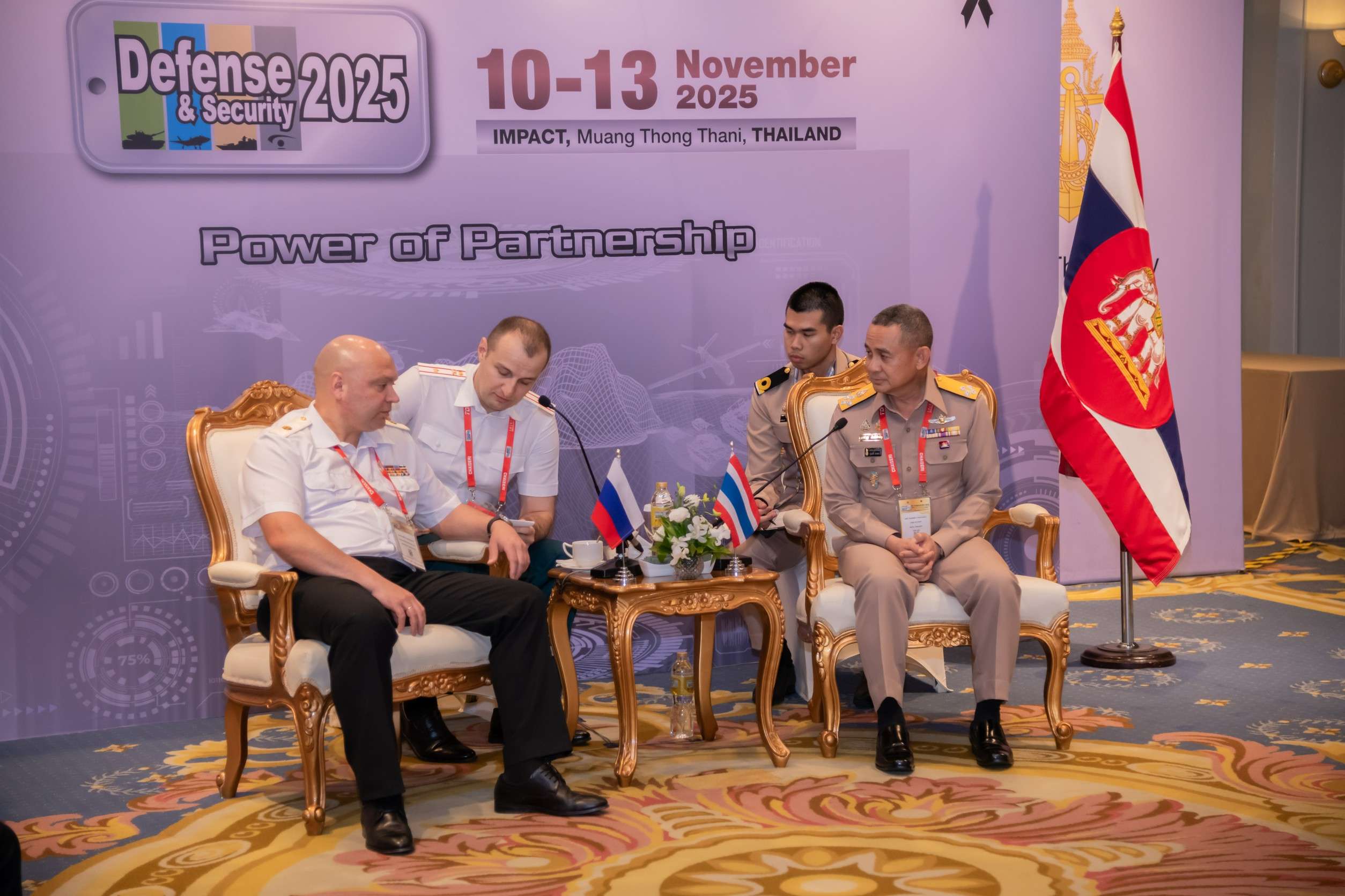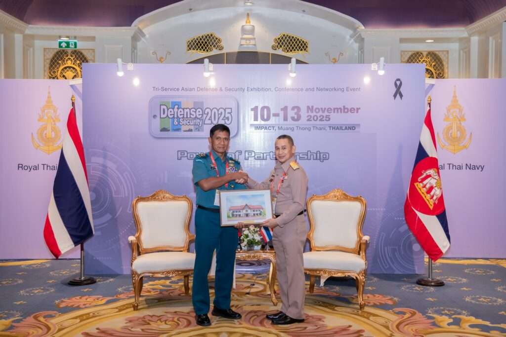 วันที่ 10 พฤศจิกายน 2568 พลเรือเอก ธาดาวุธ ทัดพิทักษ์กุล เสนาธิการทหารเรือ ผู้แทน ผู้บัญชาการทหารเรือ รับการเยี่ยมคำนับจากผู้แทนกองทัพเรือมิตรประเทศที่เดินทางมาร่วมงาน Defense & Security 2025 ณ ห้องจูปิเตอร์ 9 อิมแพ็ค เมืองทองธานี อ.ปากเกร็ด จ.นนทบุรี