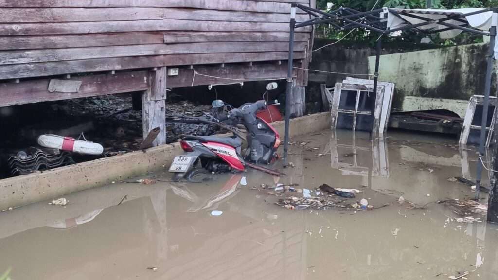 น้ำทะเลหนุนสูงเอ่อเข้าท่วมบ้านเรือนประชาชนชุมชนแสงเทียน อ.เมืองนนทบุรี ชาวบ้านต้องยกของหนีน้ำขึ้นชั้นสอง อยู่กับน้ำท่วมขังนานนับสัปดาห์ หวั่นไฟฟ้าช็อต–คลื่นเรือซัดบ้านพัง วอนหน่วยงานเร่งช่วยเหลือก่อนน้ำทะเลหนุนรอบใหม่