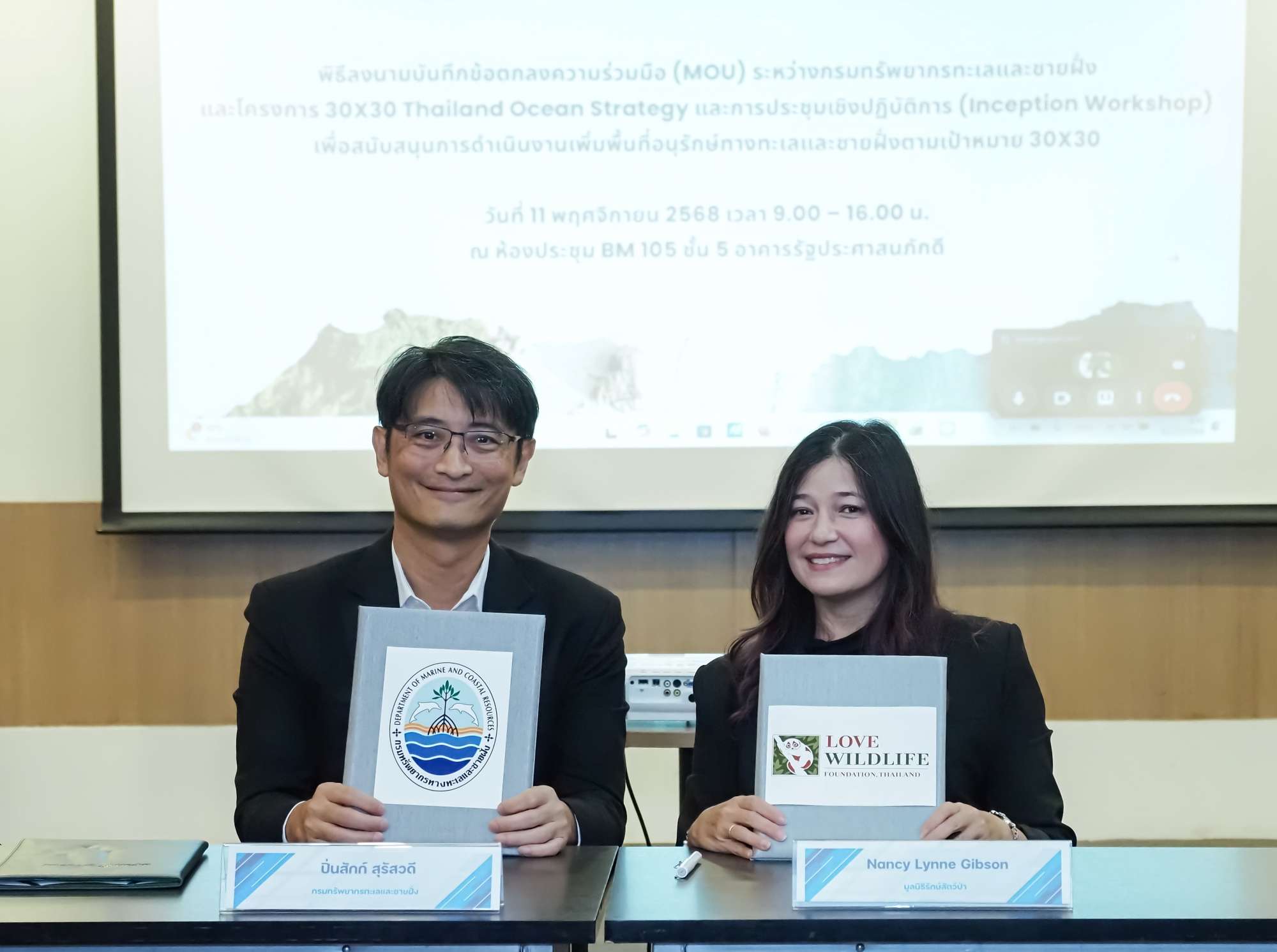 กรุงเทพฯ, วันที่ 11 พ.ย. นายปิ่นสักก์ สุรัสวดี อธิบดีกรมทรัพยากรทางทะเลและชายฝั่ง (ทช.) กล่าวถึงความร่วมมือในการดำเนินงานโครงการ 30×30 Thailand Ocean Strategy กับมูลนิธิรักสัตว์ป่า หรือ Love Wildlife Foundation ว่า การทำงานที่ผ่านมานับเป็นความร่วมมือที่ทุกภาคส่วนได้ให้ความสำคัญต่อการอนุรักษ์ ฟื้นฟูทรัพยากรทางทะเลและชายฝั่งให้สมบูรณ์และยั่งยืน โดยทำงานร่วมกับทุกภาคส่วนถือว่าประสบความสำเร็จ ทำให้ทรัพยากรธรรมชาติทางทะเลฟื้นฟูกลับมาสมบูรณ์มากขึ้นยิ่งขึ้นตามเป้าหมายที่กำหนดไว้ ทำให้มีการผลักดัน และหารือถึงแนวทางการดำเนินงานในอนาคตร่วมกับหน่วยต่าง ๆ เพื่อขับเคลื่อนการดำเนินโครงการฯ ให้เดินหน้าต่อไปอย่างมั่นคง