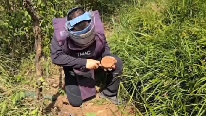 4.ผลการตรวจพบตั้งแต่เริ่มปฏิบัติการจนถึงปัจจุบันพบทุ่นระเบิดสังหารบุคคลรวม 7 ลูกได้แก่ ทุ่นชนิด PMN จำนวน 5 ลูก — สภาพพร้อมใช้งาน (ติดตั้งอยู่กับที่) ทุ่นชนิด PMD-6M จำนวน 1 ลูก — สภาพชนวนชำรุดทุ่นชนิดสะเก็ด POMZ-2 จำนวน 1 ลูก — สภาพไม่พร้อมใช้งาน (ลวดสะดุดขาด) ไม่พบทุ่นระเบิดดักรถถังในพื้นที่ปฏิบัติการ