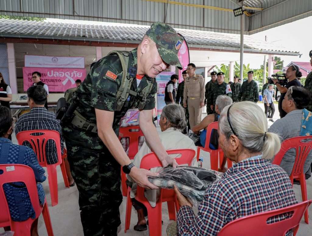 จากนั้น แม่ทัพภาคที่ 1ผบ.ศปก.ทภ.1 พร้อมคณะ เดินทางไปติดตามความคืบหน้าภารกิจการเก็บกู้ทุ่นระเบิดเพื่อคืนพื้นที่ปลอดภัยให้ประชาชนมีพื้นที่ทำกิน ณ บ้านหนองจานซึ่งดำเนินการในพื้นที่อันตรายต้องสงสัยที่เหลืออยู่ (พื้นที่ A) เป็นที่เรียบร้อย ได้พื้นที่ปลอดภัย 32,000 ตร.ม. โดยหน่วยเฉพาะกิจที่ 12 ร่วมกับทางจังหวัดได้คืนพื้นที่ปลอดภัยให้ประชาชนมีที่ทำกินเพิ่มเติมอีก 4 ราย ปัจจุบันเข้าดำเนินการต่อในพื้นที่อันตรายต้องสงสัยที่เหลืออยู่ (พื้นที่ C ประมาณ 336,457 ตร.ม.) ตั้งแต่ 11 พ.ย.68 โดยได้พื้นที่ปลอดภัย 437 ตร.ม. และตรวจพบทุ่นระเบิดสังหารบุคคล ชนิด PMN จำนวน 2 ทุ่น (สภาพพร้อมใช้งาน) ทั้งนี้แม่ทัพภาคที่ 1/ผบ.ศปก.ทภ.1 กำชับให้เจ้าหน้าที่ปฏิบัติงานด้วยความระมัดระวัง และให้เดินหน้าเก็บกู้ทุ่นระเบิดต่อเพื่อสร้างสภาพแวดล้อมปลอดภัยในพื้นที่อธิปไตยของไทย ในโอกาสนี้ได้พบปะชาวบ้าน บ.หนองจานและชุมชนโดยรอบ ซึ่งมารับบริการตรวจสุขภาพจากหน่วยแพทย์เคลื่อนที่ มทบ.19 มาดูแลตรวจคัดกรองสุขภาพร่างกายรวมไปถึงสุขภาพจิตของประชาชน พร้อมจัดรถครัวสนามประกอบอาหารแจกจ่ายให้กับประชาชนที่มารับบริการ ณ ศาลาประชาคม บ.หนองจาน พร้อมพูดคุยให้กำลังใจและขอให้เชื่อมั่นการปฏิบัติงานของเจ้าหน้าที่ทหาร ตำรวจตลอดจนทุกภาคส่วนพร้อมจะปกป้องแผ่นดินไทยและดูแลชาวบ้านในพื้นที่อย่างดีที่สุด