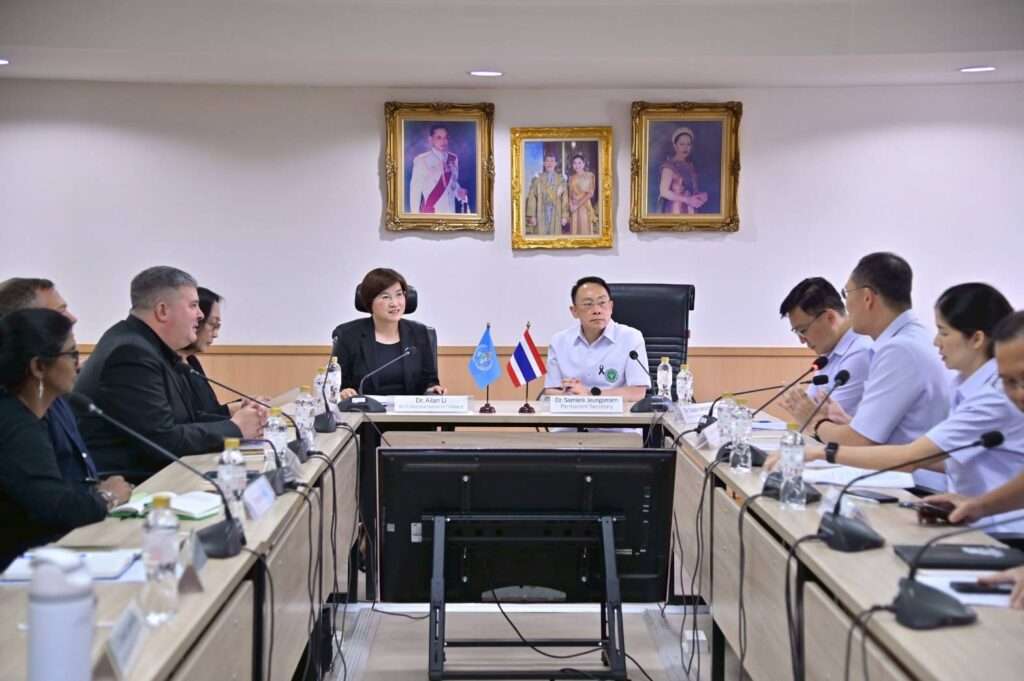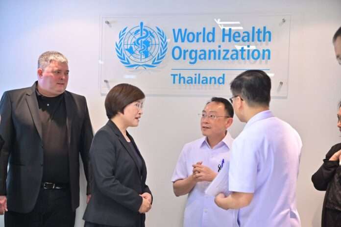 วันนี้ (13 พฤศจิกายน 2568) ที่ สำนักงานปลัดกระทรวงสาธารณสุข นพ.สมฤกษ์ จึงสมาน ปลัดกระทรวงสาธารณสุข พร้อมด้วย นพ.โสภณ เอี่ยมศิริถาวร รักษาราชการแทนรองปลัดกระทรวงสาธารณสุข ให้การต้อนรับ พญ.อ้ายหลาน หลี (Ailan Li) ผู้แทนองค์การอนามัยโลกประจำประเทศไทย และคณะ ในโอกาสเข้ารับตำแหน่งใหม่ และเปิดเผยหลังการเข้าพบว่า ผู้แทนองค์การอนามัยโลกประจำประเทศไทยได้ยกย่องประเทศไทยว่าเป็นผู้นำด้านสุขภาพโลก โดยเฉพาะการมีส่วนร่วมอย่างต่อเนื่องในการประชุมระดับโลก ทั้งคณะกรรมการบริหารองค์การอนามัยโลก และสมัชชาอนามัยโลก รวมทั้งการสนับสนุนอย่างเข้มแข็งด้านการรับมือโรคระบาด การผลักดันการเจรจาข้อตกลงการเตรียมพร้อมและตอบสนองต่อการระบาดใหญ่ (Pandemic Agreement) การดำเนินงานเพื่อสนับสนุนแนวทางสนับสนุนทางการเงินที่ยั่งยืน และการปฏิรูปโครงสร้างสถาปัตยกรรมสุขภาพโลกที่รวมถึงการปฏิรูปองค์การอนามัยโลก