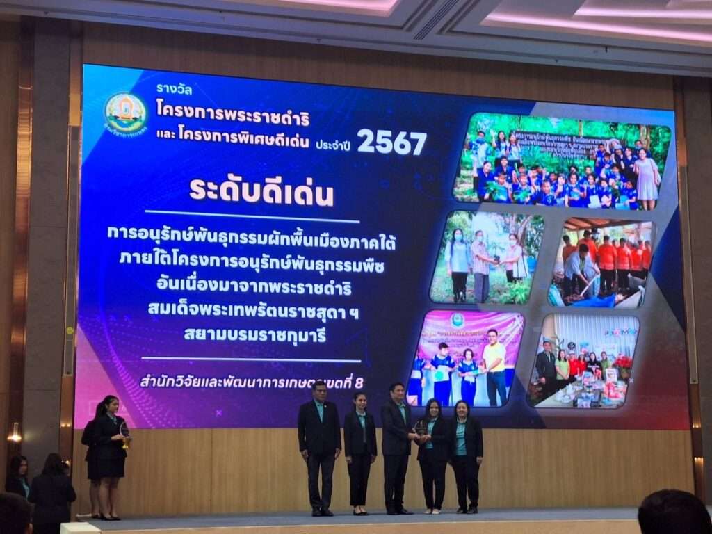 จากผลการดำเนินงานทำให้ได้รับรางวัลโครงการพระราชดำริและโครงการพิเศษ ระดับดีเด่น ประจำปี 2567 ซึ่งตลอดเวลากว่า 30 ปี ของการดำเนินงาน กรมฯ ได้สืบสานแนวพระราชดำริในการอนุรักษ์พันธุกรรมพืชพื้นเมืองภาคใต้มาอย่างต่อเนื่อง ส่งผลให้เกิดการอนุรักษ์ทรัพยากรพันธุกรรมที่มีคุณค่า สร้างโอกาสทางเศรษฐกิจแก่เกษตรกรในพื้นที่ และยังคงมุ่งมั่นดำเนินงานต่อไป เพื่อรักษาความหลากหลายทางชีวภาพและความมั่นคงทางอาหารของประเทศ