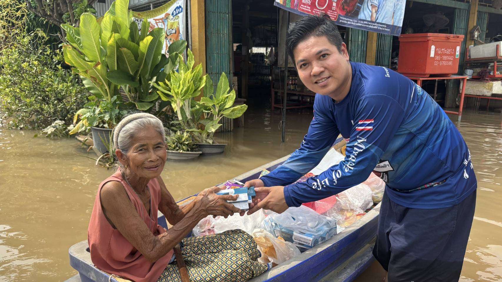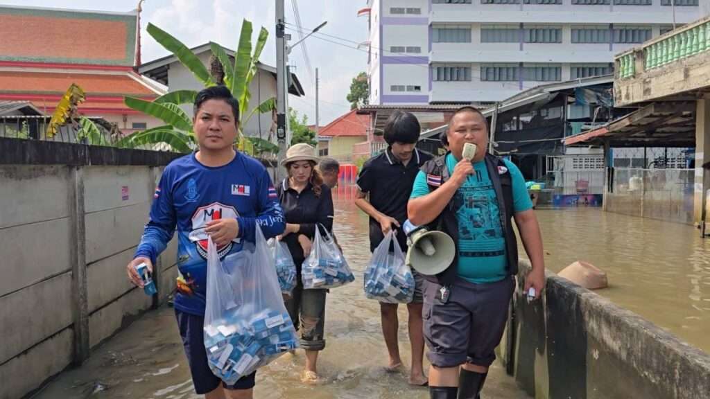 นายพลวัตร หรือ “อดีต สจ.บอย” กล่าวว่า วันนี้ตนพร้อมทีมงานจึงได้เดินทางมาให้กำลังใจพี่น้องประชาชนในชุมชนวัดตาล ชุมชนวัดตำหนักเหนือ และชุมชนวัดบางจาก ริมแม่น้ำเจ้าพระยา หลังได้รับแจ้งว่าพื้นที่โดยรอบมีปริมาณน้ำท่วมสูงเกือบถึงหัวเข่า บางจุดในชุมชนปริมาณน้ำสูงเกือบถึงระดับเอวและหน้าอก ชาวบ้านได้รับความเดือดร้อนอย่างหนัก ต้องเดินลุยน้ำเข้า-ออก และใช้เรือในการสัญจร ทั้งเด็ก ๆ ที่ออกไปโรงเรียน และผู้ใหญ่ที่ออกไปทำงาน ทำให้มีปัญหาเรื่องน้ำกัดเท้าจำนวนมาก วันนี้ตนจึงนำครีมแก้เชื้อรา น้ำกัดเท้า จำนวน 800 ชุด มามอบให้กับชาวบ้านโดยพยายามใช้วิธีเดินเท้าเพื่อให้เข้าถึงทุกหลังคาเรือน เพื่อส่งต่อกำลังใจ ความห่วงใย ให้กับพี่น้องในชุมชน