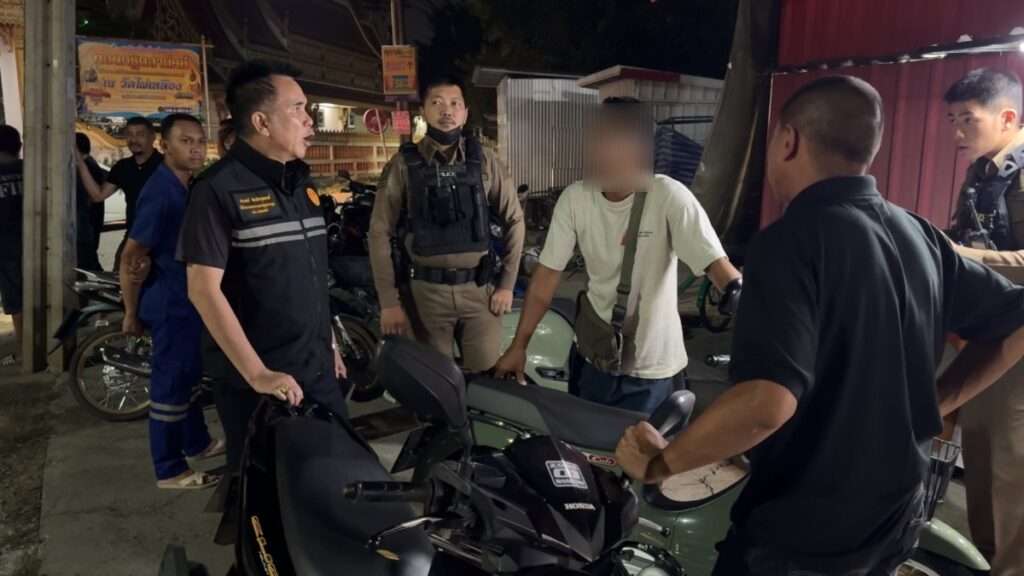 ภาพจากกล้องวงจรปิดภายในวัดไผ่เหลือง เวลา 19.18 น. วันที่ 14 พ.ย. 68 จับภาพขณะนายทอย (ผู้บาดเจ็บ) ขับขี่รถจยย. เข้าไปขอความช่วยเหลือกลุ่มอาสาสมัครมูลนิธิร่วมกตัญญู ฐานไผ่เหลือง เพื่อทำการปฐมพยาบาล ก่อนแจ้งอาสาสมัครกู้ภัยมูลนิธิป่อเต็กตึ๊ง จุดสภ.บางใหญ่ นำตัวส่งโรงพยาบาลบางบัวทอง