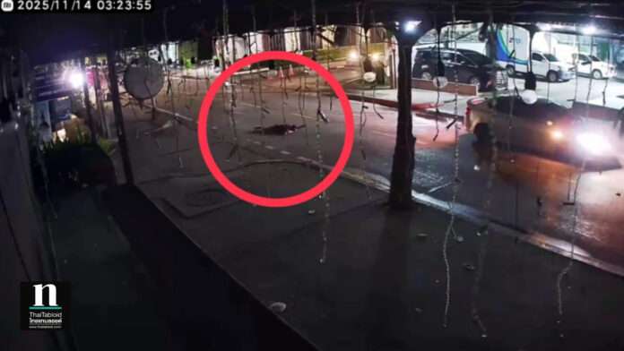 ขณะที่นายสรศักดิ์ แป้นสกุล หัวหน้ารักษาความปลอดภัยหมู่บ้านฝั่งตรงข้ามที่เกิดเหตุ เล่าว่าหลังจากเห็นภาพวงจรปิดพบว่าผู้ตายเดินออกจากร้านอาหารเนื่องจากมีอาการเมาสุราแล้วมานั่งอยู่เสาไฟริมฟุตบาทประมาณ 10-20 นาทีจากนั้นก็เดินลงมานอนกลางถนนบริเวณเลนส์ซ้ายสุด ซึ่งถนนดังกล่าวมี 2 เลนรถวิ่งสวนกัน จากนั้นก็มีพลเมืองดีที่เป็นผู้หญิงขับรถมาจอดคนละเลนตรงข้ามกับร่างของผู้เสียชีวิตพร้อมกับเปิดไฟฉุกเฉินและร้องตะโกนเพื่อห้ามไม่ให้รถคันอื่นเฉี่ยวชนซ้ำ แต่ปรากฏว่าได้มีรถกระบะขับมาเฉี่ยวชนกับร่างของผู้เสียชีวิตที่นอนอยู่ ก่อนจะมีรถอีก 2-3 คันขับมาเฉี่ยวชนช้ำจนร่างของชายคนดังกล่าวกระเด็นและเสียชีวิตท่ามกลางหญิงพลเมืองดีที่กรีดร้องด้วยความตกใจ