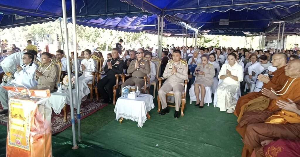 เชียงราย, – บรรยากาศบน เนินภู บ้านสบรวก หมู่ 1 ต.เวียง อ.เชียงแสน จ.เชียงราย คึกคักเป็นพิเศษ เมื่อเหล่าญาติโยมผู้มีจิตศรัทธากว่า 1,000 คน จากทั่วสารทิศ หลั่งไหลมาร่วมพิธีหล่อ “หลวงปู่ดู่ พรหมปัญโญ” องค์ใหญ่ หน้าตักกว้าง 12 เมตร 12 เซนติเมตร บนพื้นที่ศักดิ์สิทธิ์เหนือสุดแดนสยาม ติดริมถนนเชียงแสน–สามเหลี่ยมทองคำ