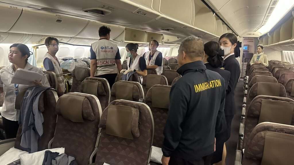 พันตำรวจเอก พงศ์ธร พงศ์รัชตนันทน์ รองผู้บังคับการตรวจคนเข้าเมือง 2 ในฐานะโฆษกกองบังคับการตรวจคนเข้าเมือง 2 เปิดเผยว่า ด่าน ตม.ทอ.สุวรรณภูมิ ได้ประสานงานร่วมกับกระทรวงการต่างประเทศ และบริษัท ท่าอากาศยานไทย จำกัด (มหาชน) อย่างใกล้ชิดตั้งแต่ก่อนเครื่องบินเดินทางถึงประเทศไทย เพื่อเตรียมความพร้อมรองรับผู้ป่วยซึ่งต้องได้รับการดูแลทางการแพทย์อย่างต่อเนื่อง