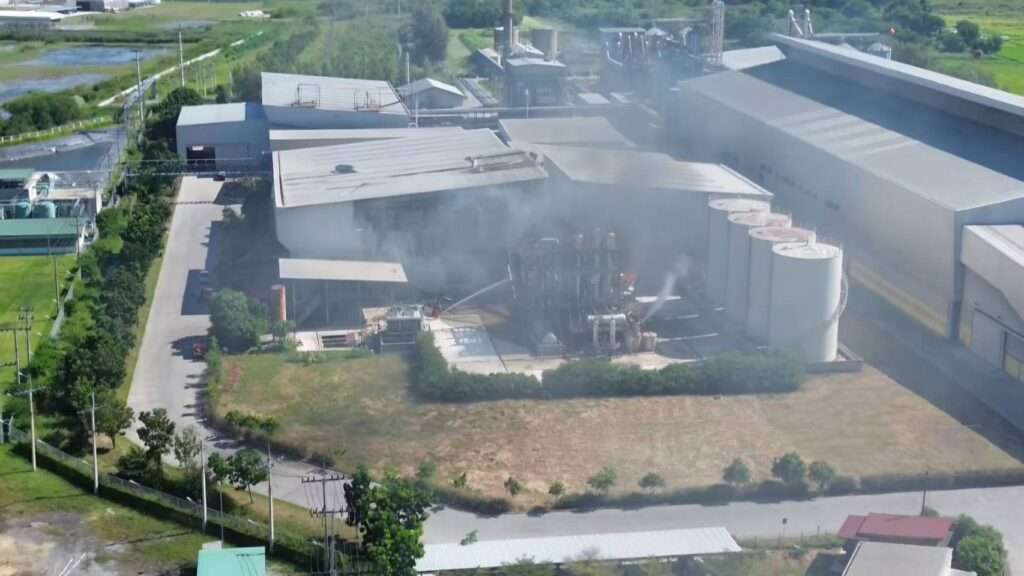 กรุงเทพฯ, วันที่ 16 พ.ย. – นายธนกร วังบุญคงชนะ รัฐมนตรีว่าการกระทรวงอุตสาหกรรม เปิดเผยว่า เมื่อเวลา 9.30 น. ของ ที่ผ่านมา ได้รับรายงานว่า เกิดเหตุระเบิดและไฟไหม้หอสกัดน้ำมันรำข้าว ของบริษัท อ่างทองธัญชาติ จำกัด ตั้งอยู่ที่ 99/3 ม.2 ต.หลักฟ้า อ.ไชโย จ.อ่างทอง เบื้องต้นมีผู้บาดเจ็บสาหัส 1 ราย และบาดเจ็บไม่รุนแรง 2 ราย ได้นำตัวส่งโรงพยาบาลแล้ว อย่างไรก็ตาม ขณะนี้เพลิงยังไม่สงบ