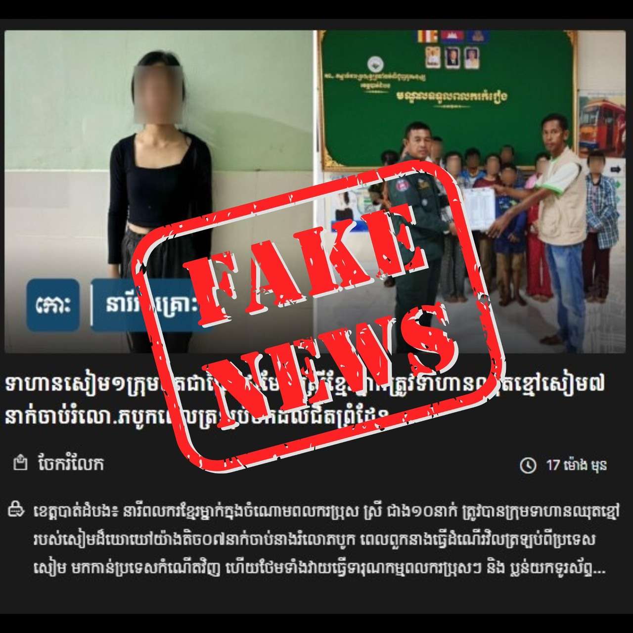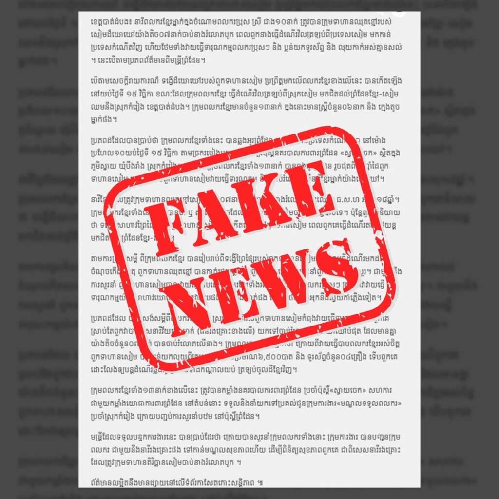สื่อกัมพูชารายงานข่าวเท็จ (Fake News) กล่าวหาเจ้าหน้าที่ไทยทำร้ายและล่วงละเมิดผู้ต้องหาหลบหนีเข้าเมือง