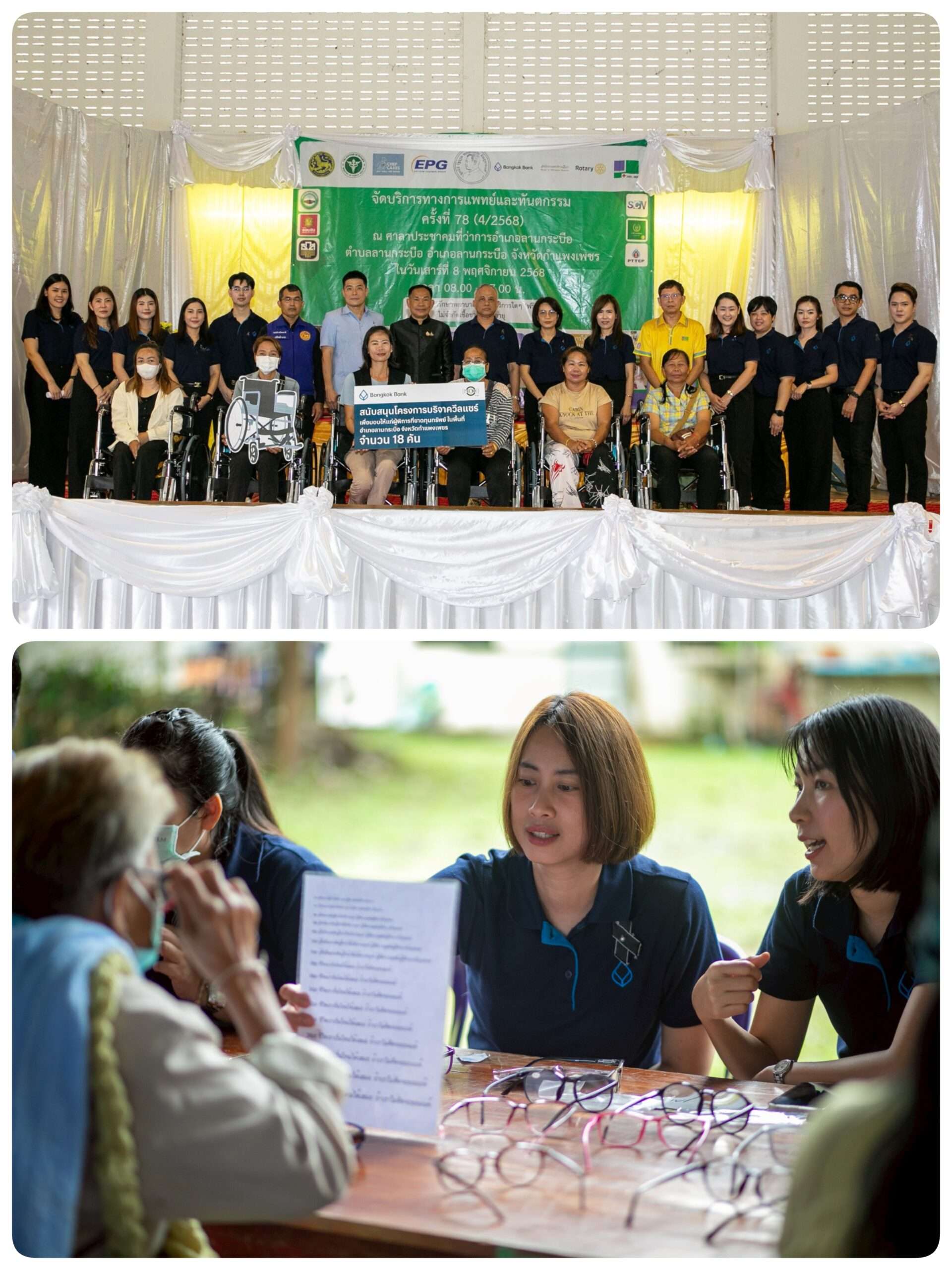 ธนาคารกรุงเทพ จำกัด (มหาชน) เดินหน้าสานต่อภารกิจเพื่อสังคมอย่างต่อเนื่อง สนับสนุนการจัดกิจกรรม ออกหน่วยแพทย์และทันตแพทย์เคลื่อนที่ ครั้งที่ 78 ซึ่งเป็นครั้งสุดท้ายของปี 2568 โดยมี นายสุวิทย์ อินทรเฉลิม เจ้าหน้าที่บริหารระดับ Vice President ฝ่ายการประชาสัมพันธ์ แพทย์หญิงศรีเพชร กาญจนกีรณา เจ้าหน้าที่บริหารระดับ Assistant Vice President ฝ่ายบริการสุขภาพ และนางนุชชุรี อินโต ผู้จัดการสาขากำแพงเพชร ลงพื้นที่ร่วมมอบเงินสนับสนุนจำนวน 100,000 บาท รถเข็นวีลแชร์ 18 คัน และแว่นสายตายาว 800 อัน พร้อมน้ำดื่ม 500 ขวด เพื่อให้บริการประชาชนในพื้นที่ ซึ่งจัดขึ้น ณ ศาลาประชาคม อำเภอลานกระบือ จังหวัดกำแพงเพชร โดยมีทันตแพทย์ริม เกษสาคร ประธานมูลนิธิหน่วยแพทย์และทันตแพทย์เคลื่อนที่เป็นผู้รับมอบ และได้รับเกียรติจาก นายอนุชา พัสถาน รองผู้ว่าราชการจังหวัดกำแพงเพชร เป็นประธานในพิธี