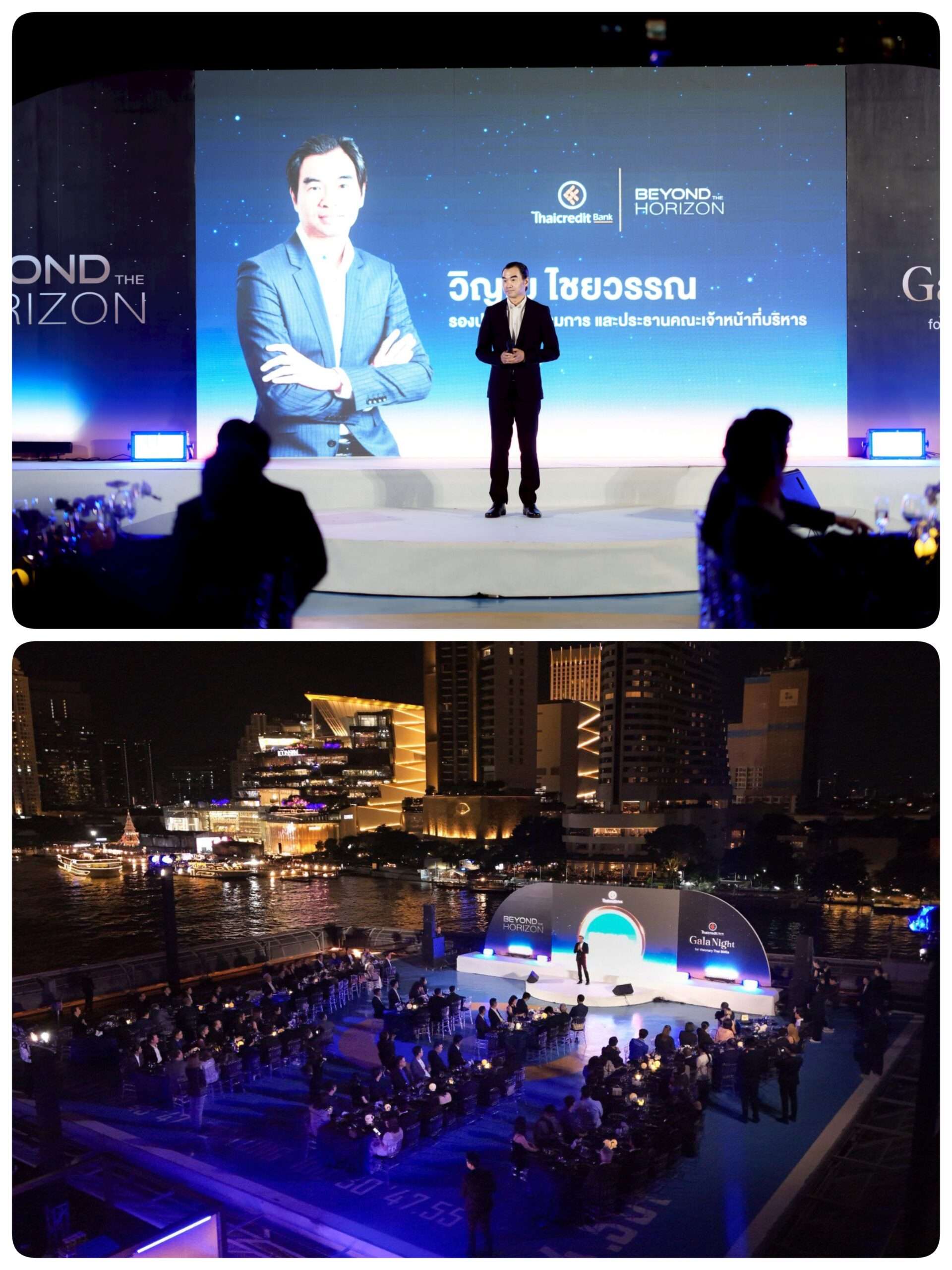 สำหรับงาน Beyond the Horizon Gala Night for Visionary Thai SMEs เป็นงานเลี้ยงเพื่อขอบคุณลูกค้าสินเชื่อไมโครเอสเอ็มอีและเอสเอ็มอีของธนาคารไทยเครดิต โดยลูกค้าทุกท่านที่เข้าร่วมงานได้สัมผัสกับความงดงามเหนือเส้นขอบฟ้ายามค่ำคืนของกรุงเทพมหานคร ในบรรยากาศที่เปี่ยมด้วยมนต์เสน่ห์ของแม่น้ำเจ้าพระยา ร่วมรับประทานอาหารมื้อค่ำสไตล์ตะวันตกจากเมนูสุดพิเศษ โดยเชฟอาร์ ธีรภัทร ตียาสุนทรานนท์ ผู้ชนะจากรายการ The Next Iron Chef Season 2