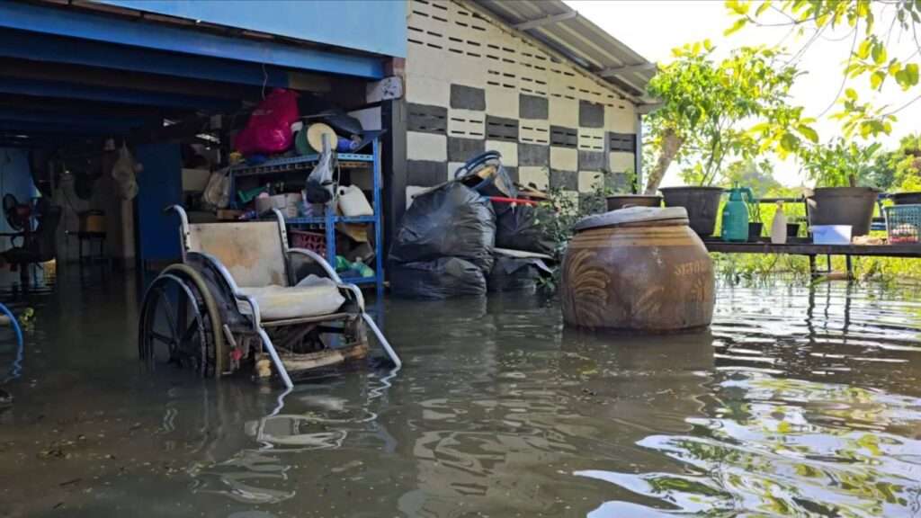 เสียสละ! ตาวัย 75 ปี ป่วยติดเตียงใจสู้ ยอมรับน้ำท่วมบ้านนานร่วมเดือน ป้องกันน้ำท่วมสวนผักชาวบ้าน วอนขอสะพานไม้ให้ลูกหลานเข้า-ออกได้