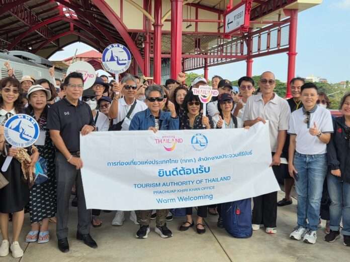 เมื่อวันที่ 15 พฤศจิกายน 2568 เพื่อท่องเที่ยวแหล่งสำคัญในพื้นที่หัวหิน–ปราณบุรี ช่วงวันหยุด 15–16 พ.ย.นี้ ดร.สมชาย กระแจะเจิม ประธานสภาอุตสาหกรรมท่องเที่ยวจังหวัดประจวบคีรีขันธ์ ร่วมกับผู้บริหาร ททท.สำนักงานประจวบฯ และการรถไฟฯ ให้การต้อนรับนักท่องเที่ยวที่เดินทางมากับขบวนรถนำเที่ยว KIHA 183 ณ สถานีรถไฟหัวหิน (อาคารใหม่)