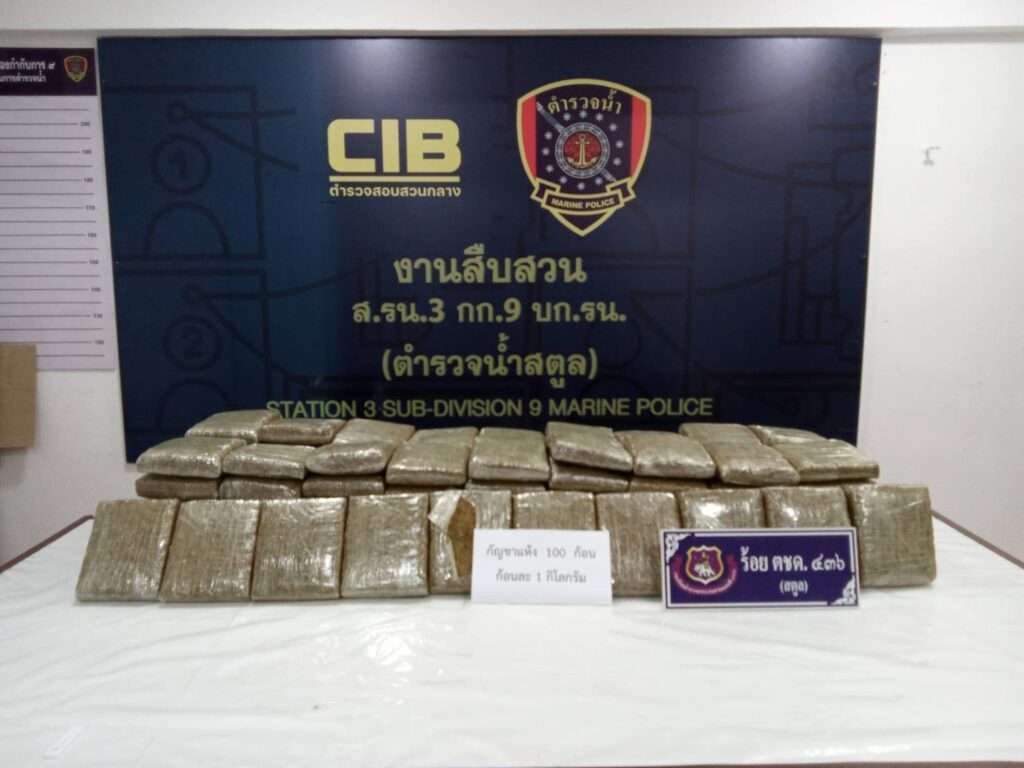 กองบังคับการตำรวจน้ำ เปิดปฏิบัติการบูรณาการสองฝั่งทะเล สกัดเครือข่ายลักลอบส่งกัญชาอัดแท่งจากลุ่มแม่น้ำโขงสู่ภาคใต้ ก่อนเตรียมส่งออกประเทศเพื่อนบ้าน จับผู้ต้องหาได้พร้อมของกลาง 200 กิโลกรัม