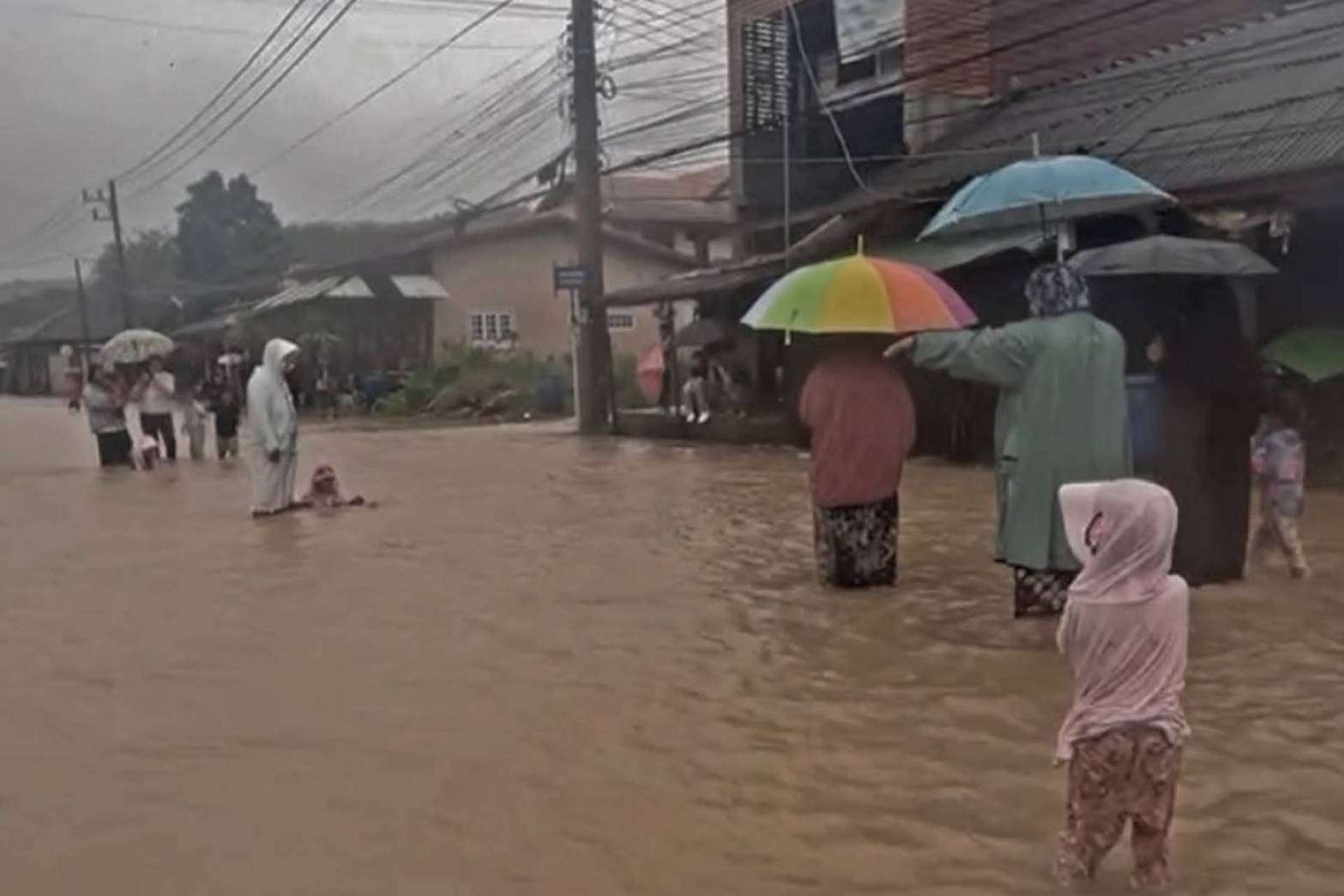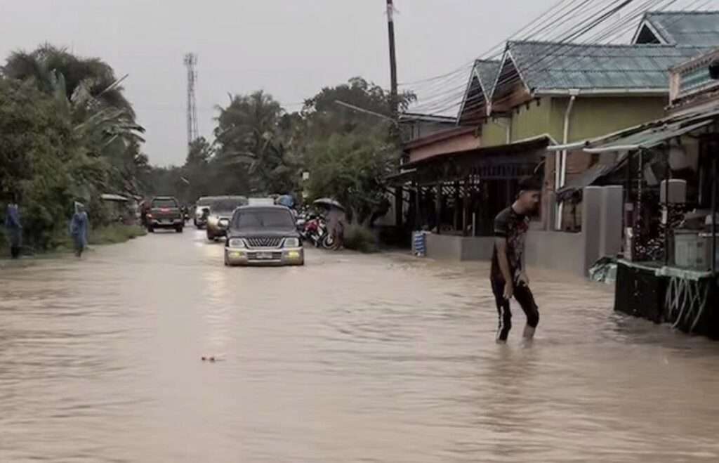 ปัตตานี, วันที่ 21 พ.ย. – จากกรณีที่ฝนตกหนักต่อเนื่องในพื้นที่ปัตตานีและจังหวัดใกล้เคียงตลอดหลายวันที่ผ่านมา ประกอบกับพื้นที่ดังกล่าวเป็นจุดเฝ้าระวังน้ำล้นตลิ่งจากแม่น้ำสำคัญ 2 สาย คือ แม่น้ำปัตตานี และ แม่น้ำสายบุรี ล่าสุดสถานการณ์น้ำท่วมในพื้นที่ ตะบิงตีงี อำเภอมายอ จังหวัดปัตตานี น้ำได้ไหลเข้าท่วม ถนน บ้านเรือนประชาชน พื้นที่ทำกินทางการเกษตร