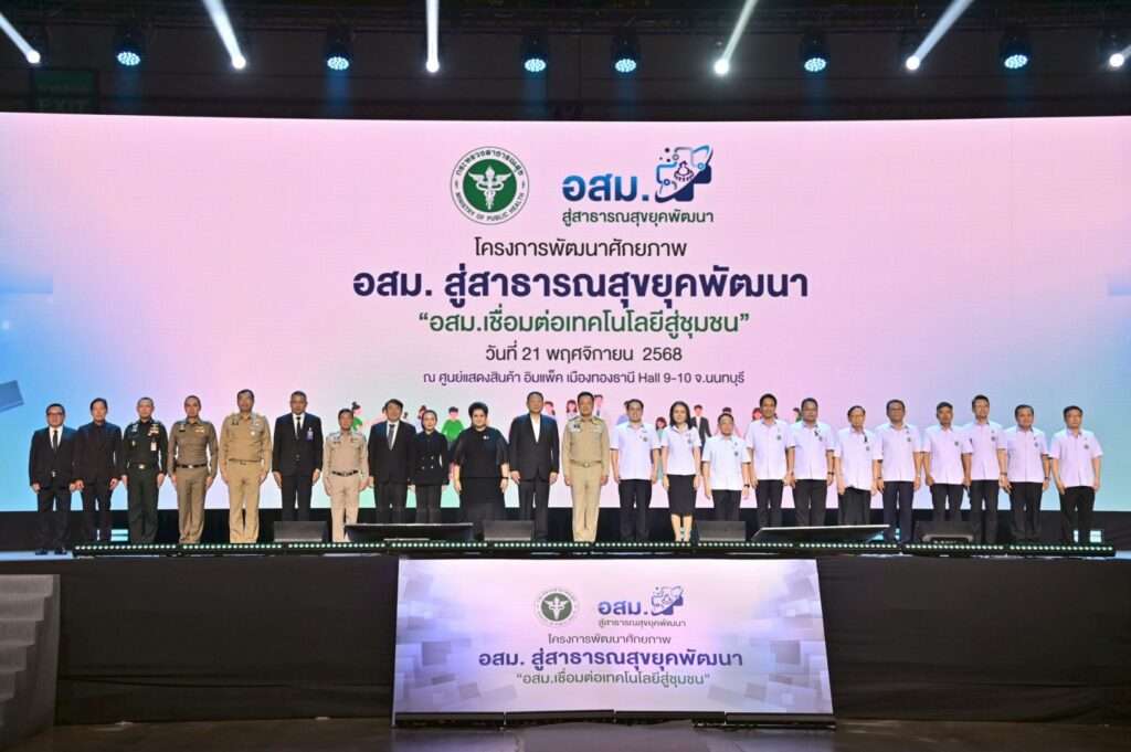 วันนี้ (21 พฤศจิกายน 2568) ที่ ศูนย์แสดงสินค้าและการประชุมอิมแพ็คเมืองทองธานี จ.นนทบุรี นายอนุทิน ชาญวีรกูล นายกรัฐมนตรีและรัฐมนตรีว่าการกระทรวงมหาดไทย เปิดโครงการพัฒนาศักยภาพ อสม. สู่สาธารณสุขยุคพัฒนา “อสม.เชื่อมต่อเทคโนโลยีสู่ชุมชน” โดยมี นายพัฒนา พร้อมพัฒน์ รัฐมนตรีว่าการกระทรวงสาธารณสุข นพ.สมฤกษ์ จึงสมาน ปลัดกระทรวงสาธารณสุข นายเชษฐา โมสิกรัตน์ ผู้ว่าราชการจังหวัดนนทบุรี คณะผู้บริหาร หัวหน้าส่วนราชการ และ อสม. เข้าร่วม 10,000 คน