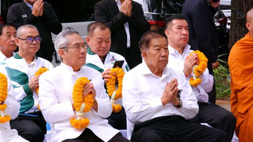 โดยมี พล.อ.ธรรมรักษ์ อิศรางกรู ณ อยุธยา ประธานที่ปรึกษาพรรค นายอัครธรณ์ เทียนไชย เลขาธิการพรรค พล.อ.ณัฐ อินทรเจริญ กรรมการมูลนิธิป่ารอยต่อ5 จังหวัด นายไพบูลย์ นิติตะวัน รองหัวหน้าพรรค นายสุรเดช ยะสวัสดิ์ รองหัวหน้าพรรค รวมถึงกรรมการบริหารพรรคและแกนนำพรรค พร้อมเจ้าหน้าที่เข้าร่วมพิธีโดยพร้อมเพรียง