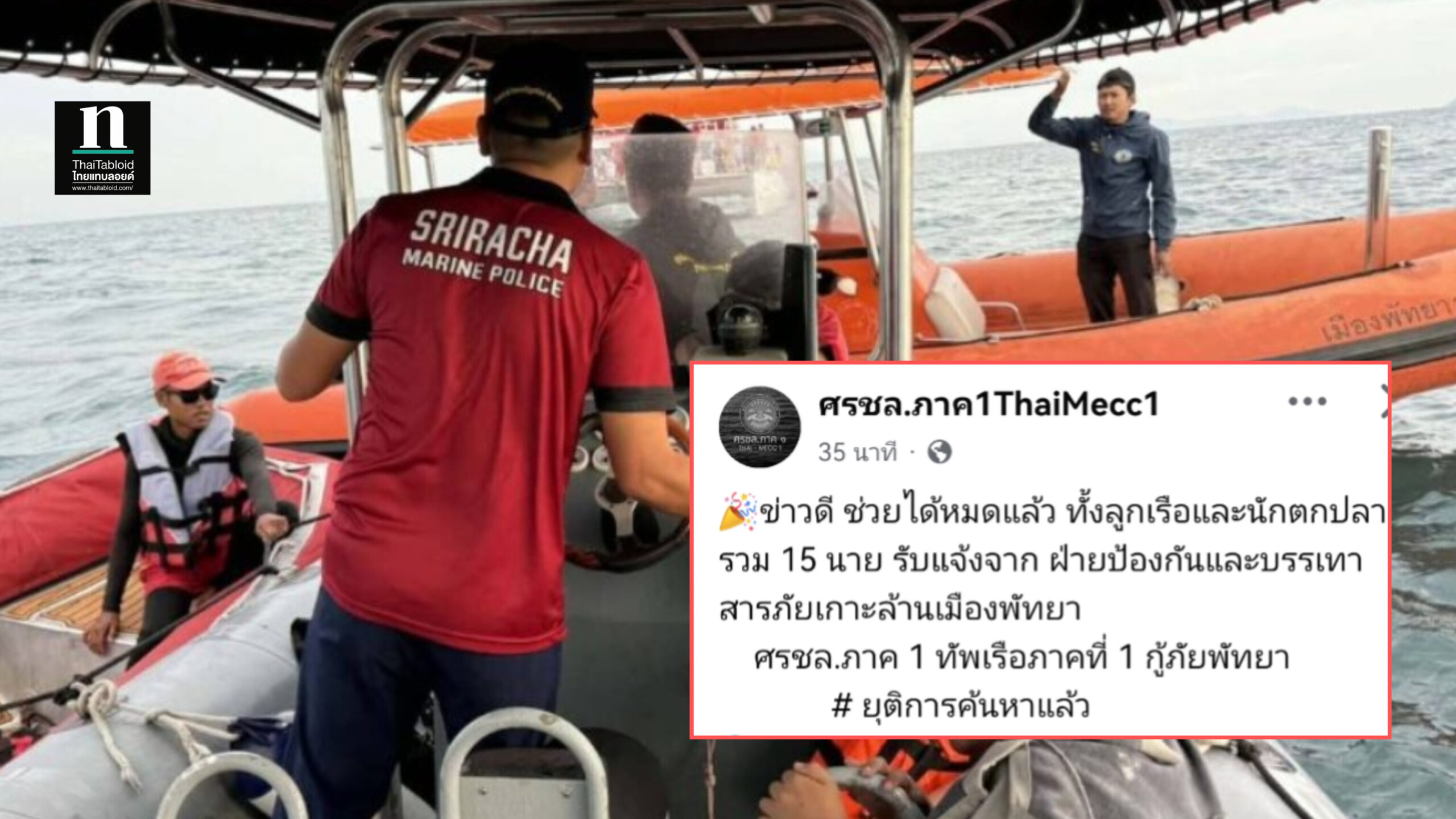 ล่าสุ ดมีรายงานยืนยันว่าสามารถช่วยเหลือทั้งลูกเรือและนักตกปลาได้ครบ 15 ราย ปลอดภัยทั้งหมด โดยข้อมูลจากฝ่ายป้องกันและบรรเทาสาธารณภัยเกาะล้านระบุว่า ทัพเรือภาคที่ 1 ศรชล.ภาค 1 และกู้ภัยพัทยาได้ยุติภารกิจค้นหาเป็นที่เรียบร้อยแล้ว