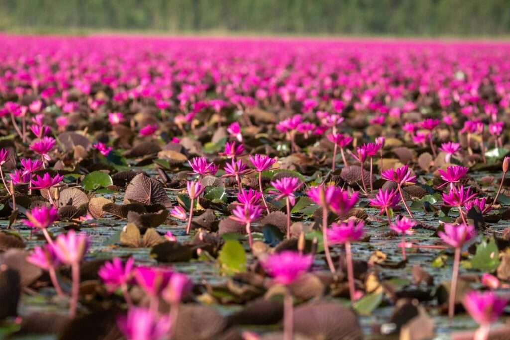 บึงบอระเพ็ด เขตห้ามล่าสัตว์ป่าแห่งนี้ ตั้งอยู่ในพื้นที่จังหวัดนครสวรรค์ ถือเป็นบึงขนาดใหญ่ที่มีความสำคัญต่อระบบนิเวศและเป็นแหล่งน้ำที่สำคัญของชาวจังหวัด ในช่วงฤดูกาลที่เหมาะสม บึงแห่งนี้จะกลายเป็นทะเลบัวสีชมพูที่สวยงามตระการตา ดอกบัวแดงหรือบัวสีชมพูเหล่านี้จะผลิบานพร้อมกันเป็นจำนวนมาก สร้างทัศนียภาพที่สวยดุจภาพวาด