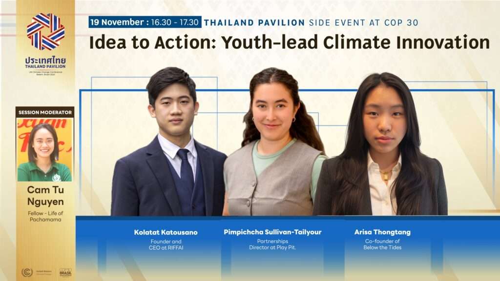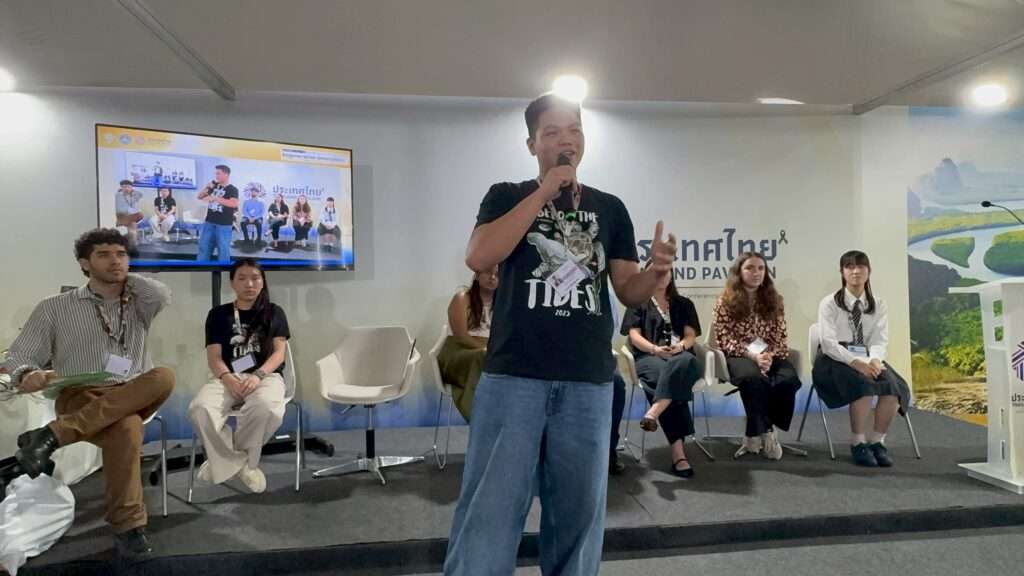 โดย นายอริณชย์ หรือน้องอิน ทองแตง และ น.ส.อริสา หรือน้องเอม ทองแตง สองพี่น้องเยาวชนผู้ก่อตั้งองค์กร Below the Tides ได้เป็น 1 ในตัวแทนเยาวชนไทยร่วมนำเสนอการขับเคลื่อน Youth Climate Action สู่การอนุรักษ์ทรัพยากรธรรมชาติและระบบนิเวศอย่างยั่งยืน บนเวทีประชาคมโลกในเวทีการประชุม COP30 ณ เมืองเบเลง ประเทศบราซิล เมื่อวันที่ 20 พ.ย.ที่ผ่านมาด้วย​ โดยการเข้าร่วมประชุม COP30 ของ “อิน” และ “เอม” จากโครงการ Below the Tides คือหลักฐานว่า ความหวัง และการลงมือทำของเยาวชนสามารถพาเสียงเล็ก ๆ ไปสู่เวทีโลกได้จริง Key Message ที่อยากส่งถึง COP30 “ความหวังคือพลัง” อินและเอมย้ำว่า ความหวังเปิดพื้นที่ให้คนจากหลากหลายพื้นฐานได้รับการเป็นตัวแทน และเป็นแรงขับให้เรากล้าสู้เพื่อสิ่งที่ถูกต้อง