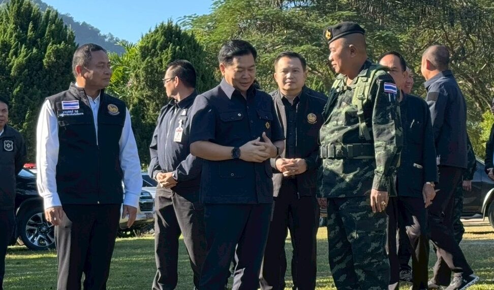 ในวันนี้ (22 พฤศจิกายน 2568) เลขาธิการ ป.ป.ส. และคณะ ได้ลงพื้นที่ แก่งผาได ต.ม่วงยาย อ.เวียงแก่น จ.เชียงราย ซึ่งอยู่ตรงข้ามด่านปากทา สปป.ลาว เพื่อสำรวจสภาพภูมิประเทศ และหารือกับหน่วยกองกำลังป้องกันชายแดน เพื่อเสริมประสิทธิภาพการสกัดกั้นยาเสพติดตามแนวชายแดนไทย-สปป.ลาว โดยมี พล.ต.สาธิต ไวยนนท์ ผบ.กกล.ผาเมือง พ.อ.ธนพันธ์ ขำทวี รอง ผอ.รมน.ภาค3 สย.2 พ.อ.สุพรรณ ร้อยพุทธ ผบ.ฉก.ทัพเจ้าตาก พ.อ.จักรพงษ์ สอดสี ผบ.ฉก.ทพ.31 น.อ.ภากร มาเนียม ผบ.นรข.เขตเชียงราย และ พ.ต.ณรงค์เวทย์ รัศมี หน.ฝขว. ร่วมให้ข้อมูล และมีนายรุจติศักดิ์ รังษี รองผู้ว่าราชการจังหวัดเชียงราย นายสุพจน์ ลังกาวีรนันท์ นายอำเภอเวียงแก่น และฝ่ายปกครองอำเภอเวียงแก่น ร่วมให้การต้อนรับ