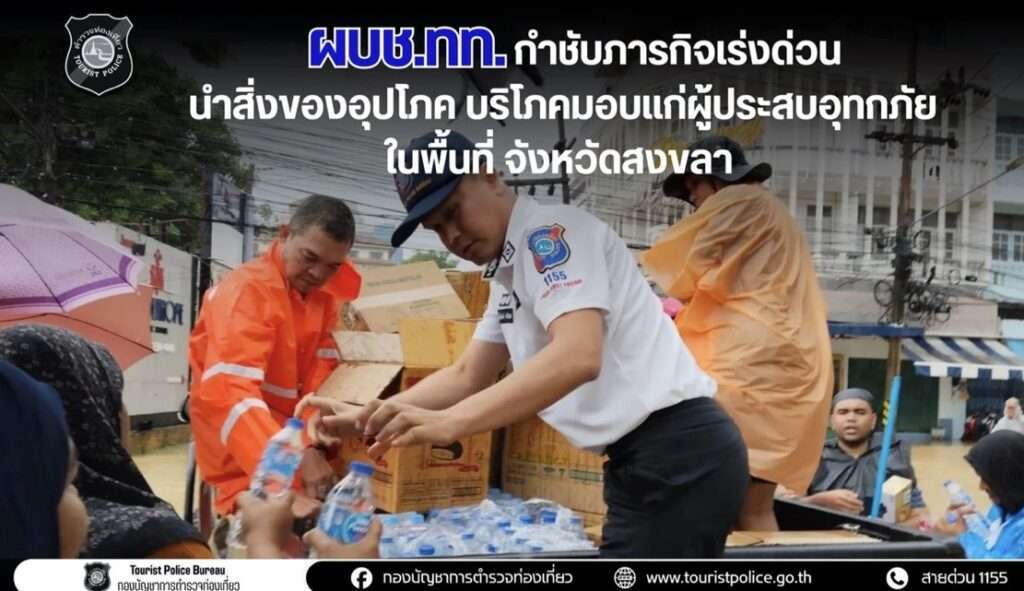 ผบช.ทท.กำชับตำรวจท่องเที่ยวหาดใหญ่ นำอาหารและเครื่องดื่มลงพื้นที่มอบให้ประชาชนและนักท่องเที่ยวที่ได้รับผลกระทบน้ำท่วมอย่างเร่งด่วน