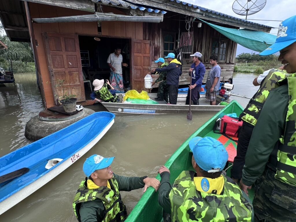 โดย จังหวัดสงขลา – หน่วยเฉพาะกิจ กรมทหารราบที่ 5 จัดกำลังพล พร้อมด้วยยานพาหนะ ช่วยส่งต่อผู้ป่วยฉุกเฉิน ในพื้นที่อำเภอเมือง จำนวน 7 ราย ไปยังโรงพยาบาลสงขลา และช่วยอพยพประชาชนที่ติดค้างไปยังพื้นที่ปลอดภัย – กองพันทหารราบที่ 1 กรมทหารราบที่ 153 จัดกำลังพลลงพื้นที่แจกจ่ายสิ่งอุปโภคบริโภคให้แก่ประชาชนที่ได้รับผลกระทบในอำเภอทุ่งยางแดง โอกาสนี้ได้ช่วยประชาชนที่ได้รับบาดเจ็บจากการลื่นล้มในบ้านจนแขนซ้ายหักผิดรูป ส่งต่อไปรับการรักษาที่โรงพยาบาลทุ่งยางแดง