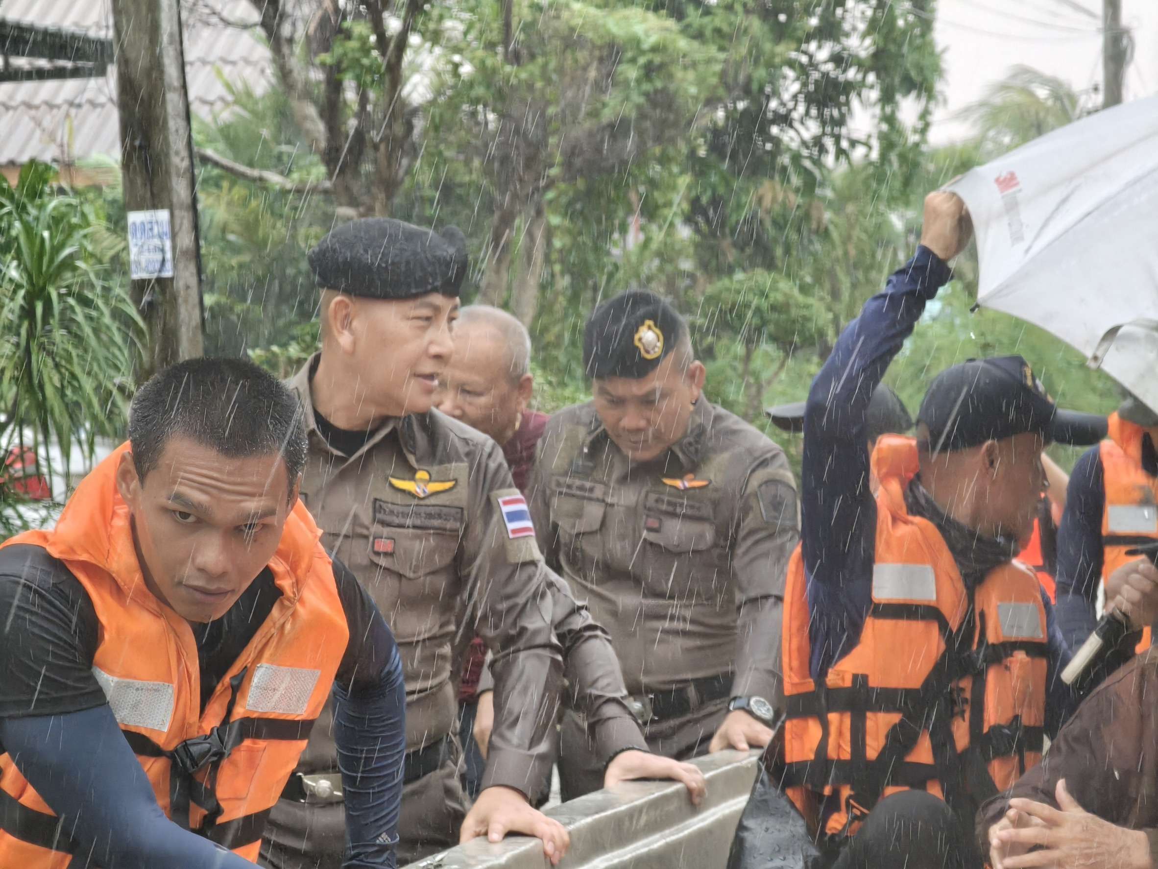 ผบ.ตร.นำทีมผู้บัญชาการภาค 9 ลงพื้นที่หาดใหญ่ ฝ่าฝน-ลุยน้ำ ตรวจเยี่ยมศูนย์พักพิง ม.อ.หาดใหญ่ พร้อมมอบของจำเป็น ย้ำตำรวจพร้อมดูแลประชาชนเต็มกำลังจนกว่าสถานการณ์คลี่คลาย