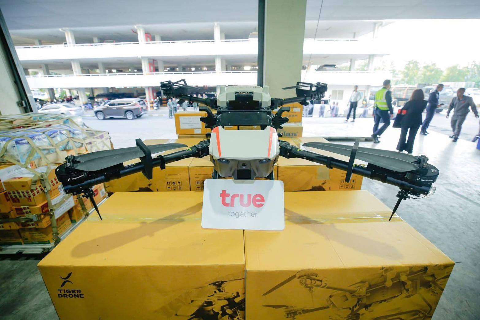 นายเอกราช ปัญจวีณิน หัวหน้าคณะผู้บริหารด้านดิจิทัล บมจ.ทรู คอร์ปอเรชั่น นำโดรน รุ่น TGD25 จำนวน 20 ลำ ร่วมช่วยเหลือภารกิจลำเลียงอาหาร ยา เวชภัณฑ์ และสิ่งของจำเป็นเร่งด่วนให้ผู้ที่ติดอยู่ในพื้นที่เสี่ยงหรือไม่สามารถออกมาได้ด้วยตนเองอย่างทันท่วงที การเสริมภารกิจด้วยโดรนครั้งนี้ เป็นความตั้งใจของทรู ที่จะนำเทคโนโลยีและระบบนิเวศดิจิทัลครบวงจรมาช่วยสร้างคุณค่าในยามวิกฤต