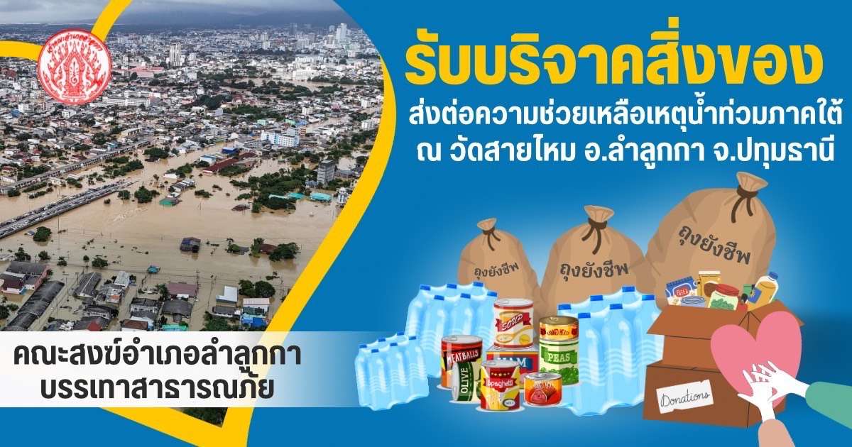 คณะสงฆ์อำเภอลำลูกกาบรรเทาสาธารณภัย ตั้งศูนย์รับ–ส่งความช่วยเหลือผู้ประสบอุทกภัย ส่งต่อสิ่งของไปยังพื้นที่สงขลา ที่วัดสายไหม ปทุมธานี