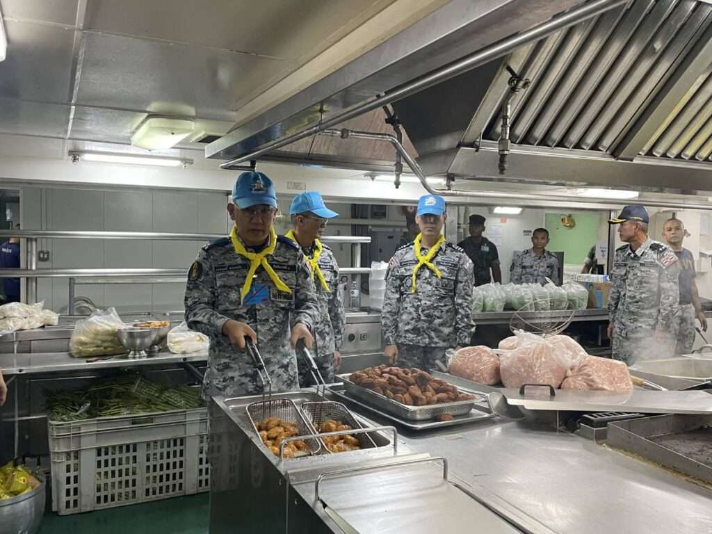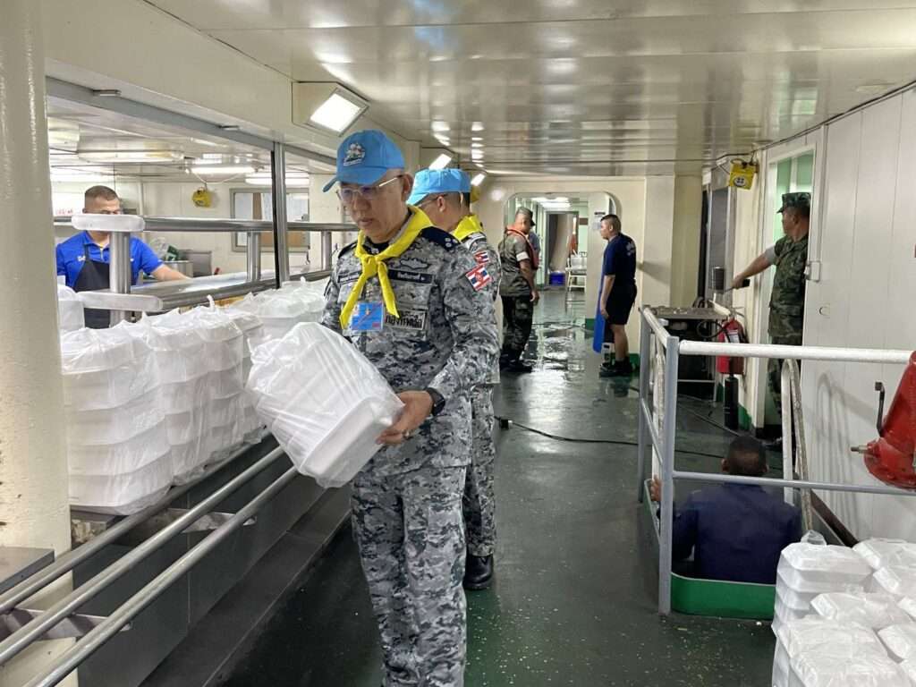 พลเรือตรี ปารัช รัตนไชยพันธ์ โฆษกกองทัพเรือ เปิดเผยว่า หลังจากเรือหลวงจักรีนฤเบศรได้ทอดสมอบริเวณชายฝั่งจังหวัดสงขลาเมื่อกลางดึกของคืนที่ผ่านมา เช้าวันนี้โรงครัวพระราชทานบนเรือหลวงจักรีนฤเบศร ซึ่งจัดตั้งขึ้นเพื่อสนับสนุนการช่วยเหลือผู้ประสบอุทกภัย ได้เริ่มดำเนินงานตั้งแต่เช้ามืดกำลังพลประจำโรงครัวได้จัดเตรียมอาหารปรุงสุกและน้ำดื่ม จำนวน 3,000 ชุด เพื่อส่งมอบให้ประชาชนในพื้นที่ประสบภัยในหลายจุดที่การสัญจรทางบกยังเข้าถึงได้ยาก