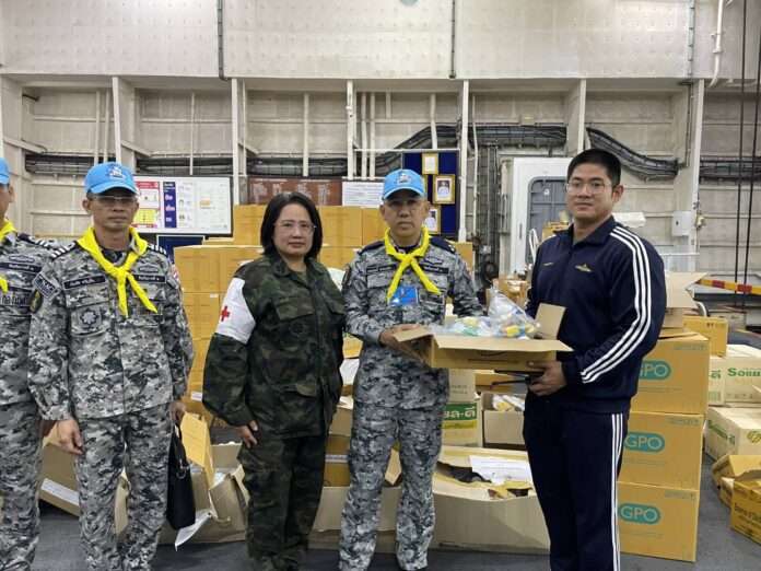 โดยได้จัดอากาศยานเฮลิคอปเตอร์ของกองทัพเรือทำการลำเลียงสิ่งของบรรเทาทุกข์ดังกล่าวขึ้นบินในช่วงเช้าของวันนี้แล้วกองทัพเรือจะเดินหน้าทำหน้าที่ของเราอย่างเต็มกำลัง เพื่อบรรเทาความเดือดร้อนของประชาชนให้เร็วที่สุด และจะยืนหยัดเคียงข้างประชาชน จนกว่าสถานการณ์จะคลี่คลาย