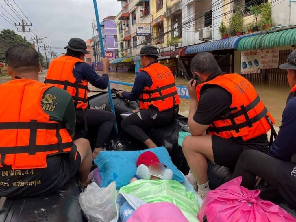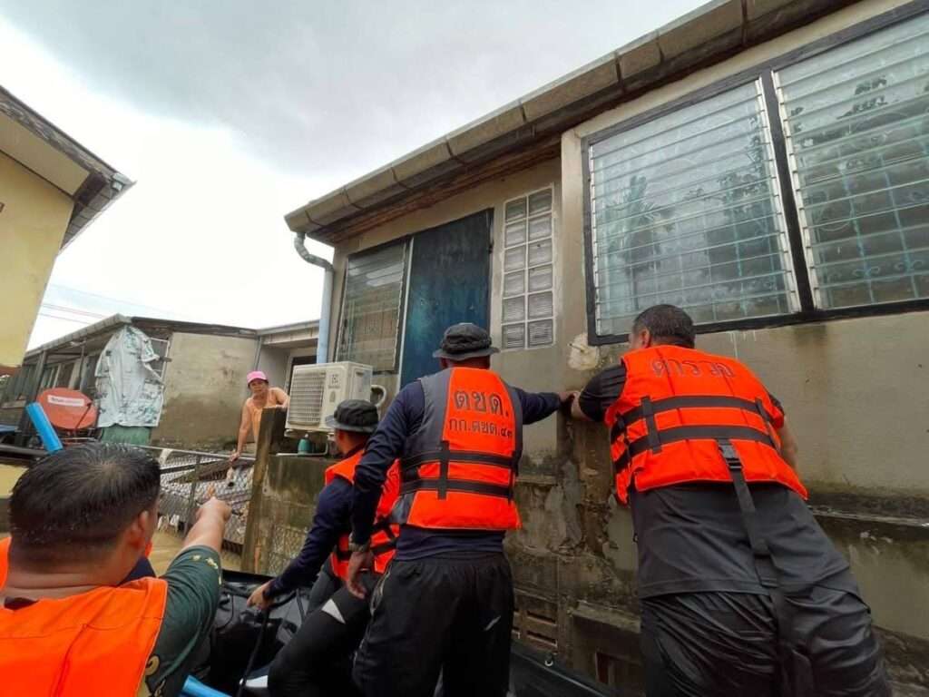 จากสถานการณ์น้ำท่วมหนักหาดใหญ่ จ.สงขลา เมื่อวันที่ 26 พฤศจิกายน 2568 ที่ผ่านมา พ.ต.ท.ชัชชัย กอศิริวลานนท์ รอง ผกก.ตชด.44 พร้อมด้วย ชุดช่วยเหลือผู้ประสบภัย กก.ตชด.44 จำนวน เข้าช่วยเหลือ หญิงชรา อายุ 98 ปี ติดอยู่ในบ้าน ถ.แก้วสมิทธิ์ ต.หาดใหญ่ อ.หาดใหญ่ จ.สงขลา