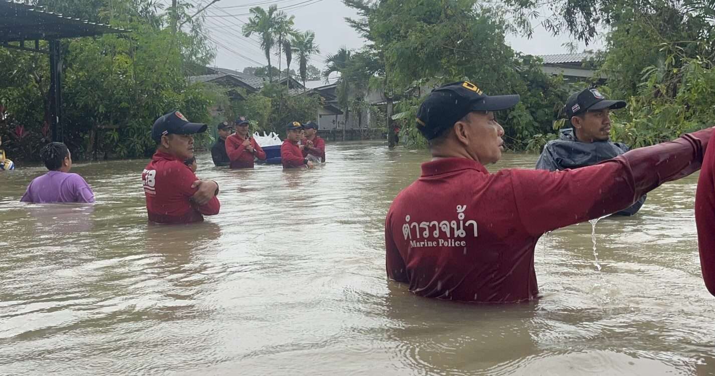 เจ้าหน้าที่ ส.รน.3 กก.7 บก.รน. ลงพื้นที่บ้านยะกัง 2 เมืองนราธิวาส นำถุงยังชีพ–เครื่องอุปโภคบริโภคเข้าช่วยเหลือผู้ประสบภัย หลังน้ำท่วมกระทบชาวบ้านเป็นวงกว้าง