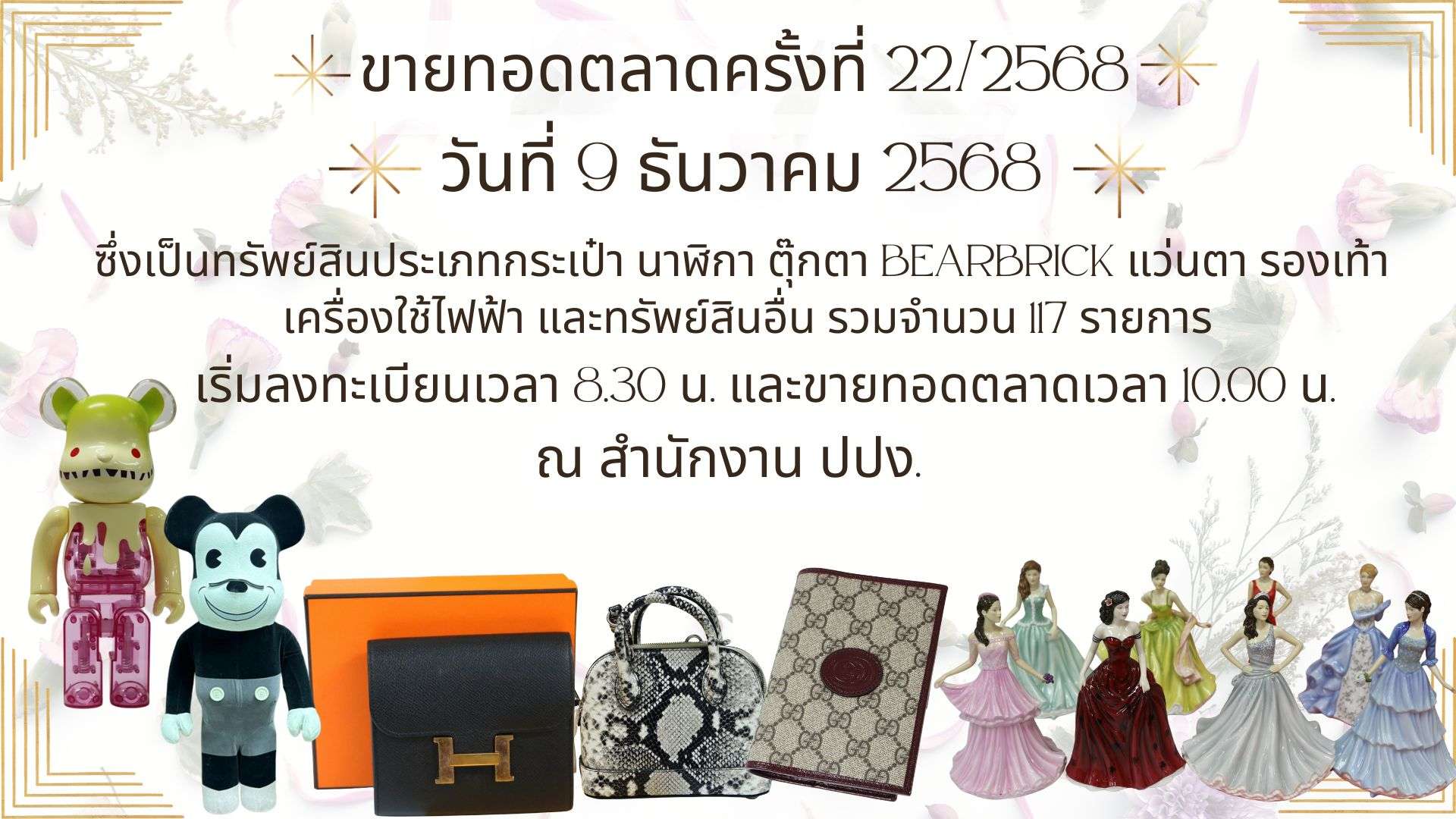 ปปง.ขายทอดตลาดทรัพย์สินประเภทกระเป๋า นาฬิกาตุ๊กตา BEARBRICK แว่นตา รองเท้า เครื่องใช้ไฟฟ้า และทรัพย์สินอื่น​ในวันที่ 9 ธ.ค.68 นี้