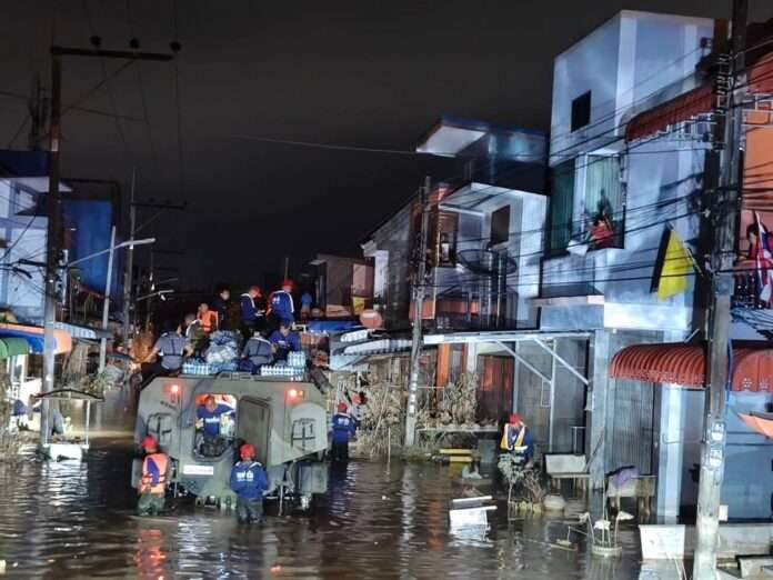 โดยวันนี้ ศูนย์บรรเทาสาธารณภัย ทัพเรือภาคที่ 2 (ศบภ.ทรภ.2) ได้วางแผนจัดกำลัง “หน่วยเคลื่อนที่เร็ว (เฉพาะกิจ)” รวม 80 นาย ประกอบด้วย 12 ชุดปฏิบัติการ พร้อมเรือยาง 12 ลำ รถบรรทุกขนาดใหญ่ 6 คัน จากหน่วยบัญชาการสงครามพิเศษทางเรือ (SEAL) กองพันลาดตระเวน กองพลนาวิกโยธิน (RECON) และ กรมสรรพาวุธทหารเรือ (EOD) พร้อมยานเกราะล้อยาง AWAV ของกองพลนาวิกโยธิน จำนวน4 คัน พร้อมกำลังพล ลงพื้นที่เข้าช่วยเหลือประชาชนในพื้นที่ที่เส้นทางถูกตัดขาดและมีน้ำท่วมขัง เพื่อช่วยเหลืออพยพและแจกจ่ายอาหาร น้ำดื่ม และสิ่งของจำเป็นให้แก่ประชาชนในพื้นที่ที่ยังคงมีภาวะน้ำท่วมต่อเนื่อง เพื่อบรรเทาความเดือดร้อนให้ได้มากที่สุด
