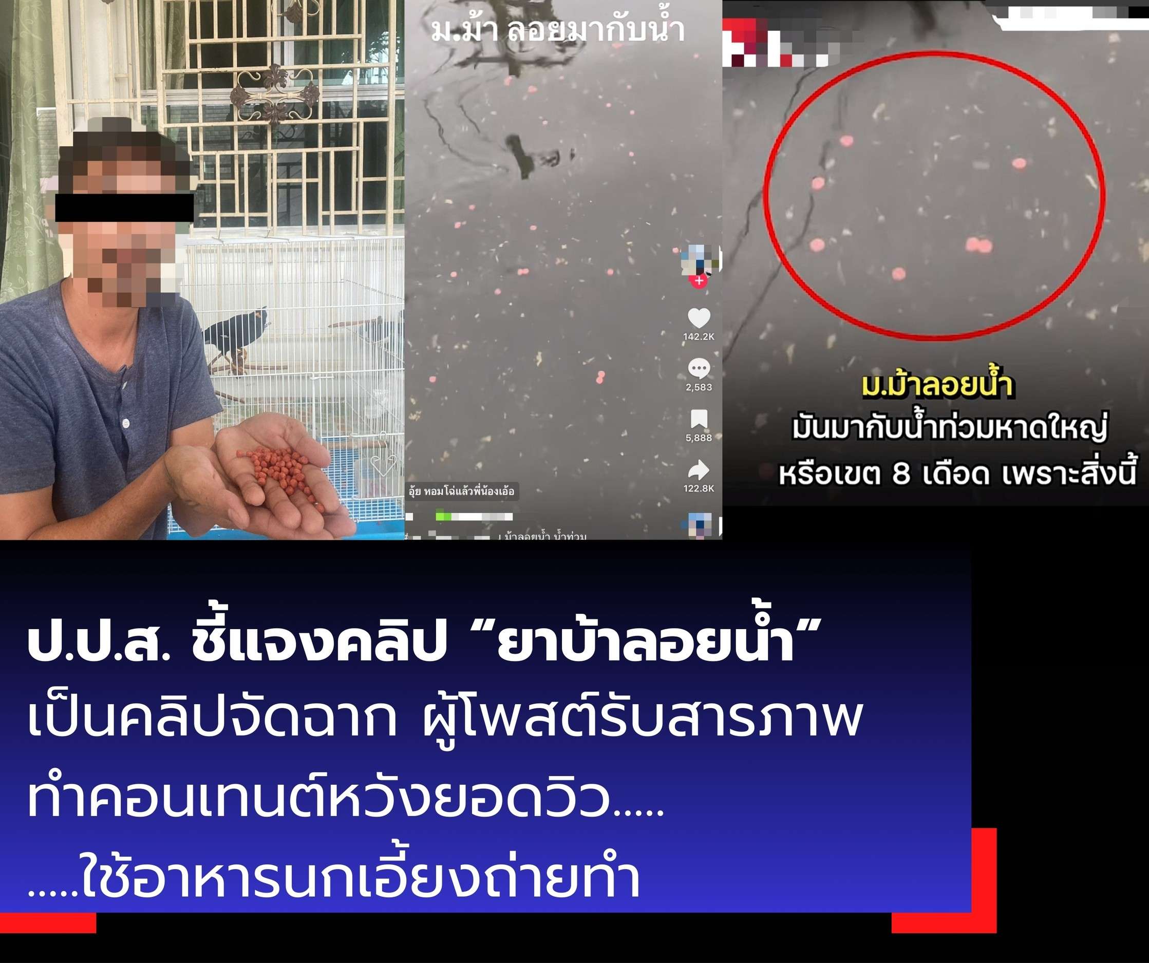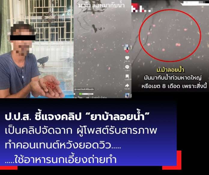 • เมื่อเจ้าหน้าที่ติดต่อสอบถาม เจ้าตัวยอมรับว่า เป็นผู้จัดทำคลิปเพื่อสร้างคอนเทนต์หวังยอดผู้ชม โดยเม็ดที่เห็นในคลิปเป็น อาหารนกเอี้ยง ไม่ใช่ยาเสพติดแต่อย่างใด
