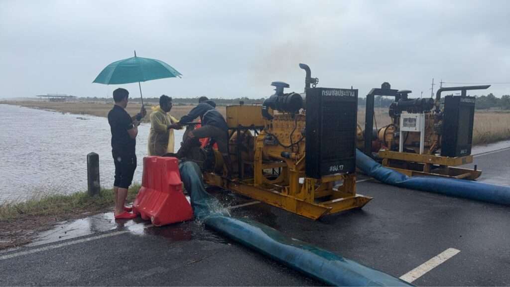 สำหรับในพื้นที่ภาคใต้ตอนล่าง ที่กำลังประสบกับปัญหาน้ำท่วมอยู่ในขณะนี้ ล่าสุดปริมาณฝนได้ลดลงแล้ว แต่ยังคงมีฝนฟ้าคะนองบางแห่ง และมีน้ำล้นตลิ่งในแม่น้ำสายต่างๆ ในพื้นที่ จ.สุราษฎร์ธานี สงขลา ตรัง สตูล ยะลา ปัตตานี และนราธิวาส กรมชลประทาน ได้ระดมเครื่องสูบน้ำจากพื้นที่ตอนบน ลงไปเสริมกำลังเร่งสูบน้ำออกจากพื้นที่น้ำท่วมขัง พร้อมตรวจสอบอาคารชลประทานต่างๆ ไม่ว่าจะเป็นประตูระบายน้ำ (ปตร.) คลองหรือระบบระบายน้ำ ให้มีความมั่นคงแข็งแรง เพื่อใช้งานได้อย่างมีประสิทธิภาพ และป้องกันผลกระทบที่อาจจะเกิดขึ้นให้มากที่สุด