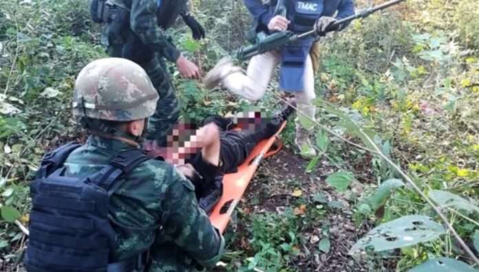 ชายชาวจีนลักลอบข้ามแดนเหยียบกับระเบิด เจ้าหน้าที่ชุดเก็บกู้ทุ่นระเบิดและตำรวจตระเวนชายแดนเข้าช่วยเหลือทันที ก่อนลำเลียงส่งโรงพยาบาลโคกสูง