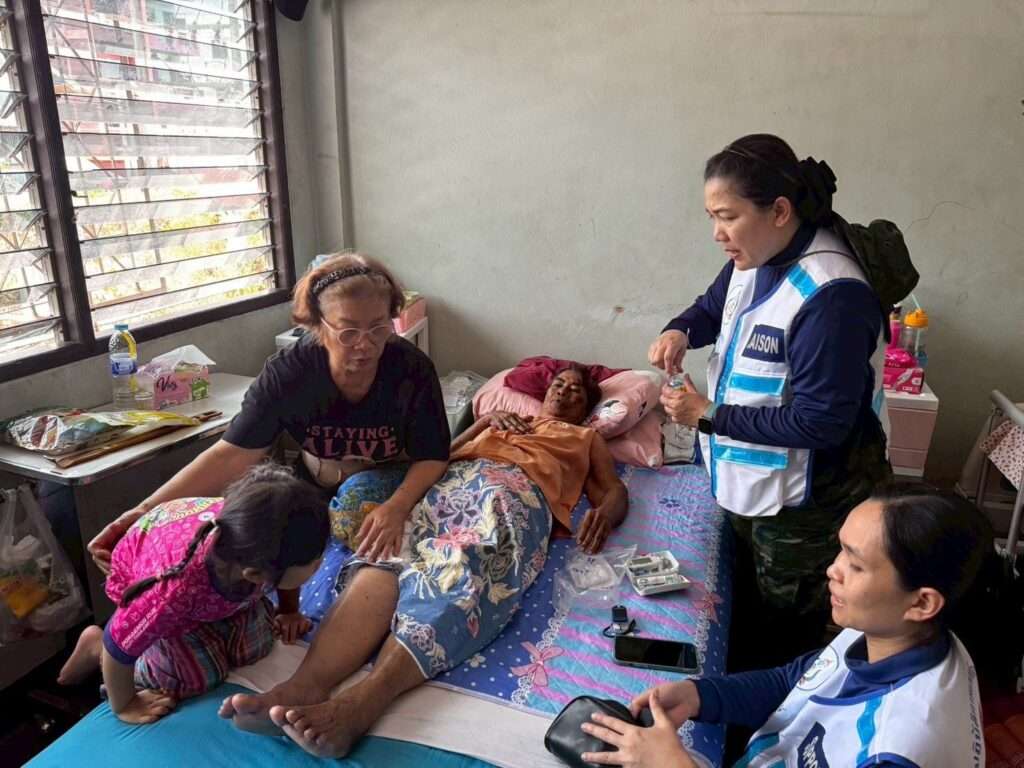 รวมทั้งเยี่ยมอาการผู้ป่วยติดเตียง รวมทั้งผู้สูงอายุโรคเรื้อรัง และผู้ป่วยที่มีความเครียดสูง พร้อมช่วยเคลื่อนย้ายไปยังพื้นที่ปลอดภัย นอกจากนี้ยังได้มอบถุงยังชีพและยา รวมกว่า 200 ชุด ในชุมชนที่ถูกน้ำท่วมขังและถูกตัดขาด