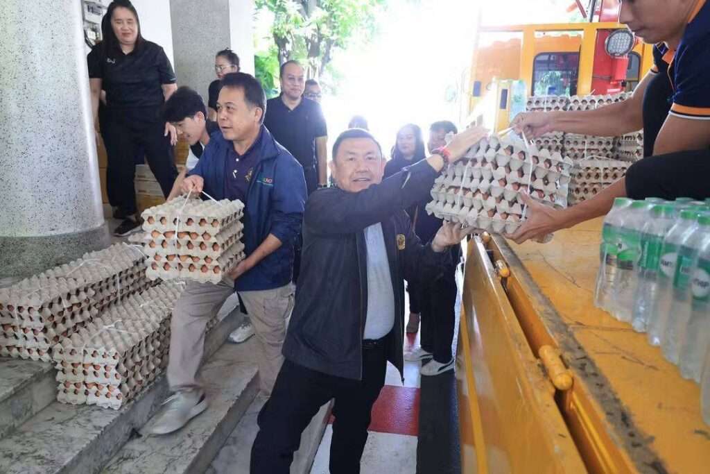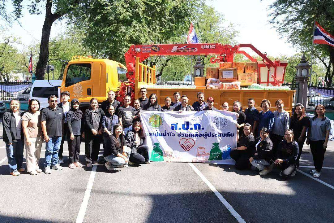 โดยสิ่งของที่ได้รับการบริจาคเพื่อส่งต่อธารน้ำใจ ช่วยเหลือผู้ประสบอุทกภัยภาคใต้ ประกอบด้วย 1. ข้าวสาร ตราฉัตร 50 แพค จำนวน 300 ถุง ๆ ละ 5 กิโลกรัม น้ำหนักรวม 1,500 กิโลกรัม 2. น้ำดื่ม 100 แพค จำนวน 1,200 ขวด ๆ ละ 550 มิลลิลิตร น้ำหนักรวม 660 กิโลกรัม 3. บะหมี่กึ่งสำเร็จรูป 19 ลัง ๆ ละ 72 ถ้วย ๆ ละ 60 กรัม รวม 1,368 ถ้วย น้ำหนักรวม 82.08 กิโลกรัม 4. น้ำดื่ม 450 ขวด 5. ไข่ไก่ 8,700 ฟอง 6. ไข่เป็ด 2,700 ฟอง 7. ไข่เค็ม KCF เกษมชัยฟู๊ด 4,000 ฟอง 8. น้ำดื่ม 25 แพค 9. มาม่า 5 ลัง 10. ไวไว 5 ลัง 11. ปลากระป๋อง 4 แพค 12. กระดาษทิชชู 48 ห่อ 13. คอตตอนบัด 12 ห่อ 14. ยาสีฟัน 24 กล่อง 15. แปรงสีฟัน 12 ด้าม 16.ผงซักฟอก 24 ห่อ 17. สบู่ 4 แพค 24 ก้อน 18. ผ้าอนามัย 60 ห่อ นอกจากนี้ ยังมีสิ่งของอื่น ๆ ที่อยู่ระหว่างการประสานขอรับบริจาคเพิ่มเติม อาทิ อาหารกระป๋อง เครื่องอุปโภค เป็นต้น